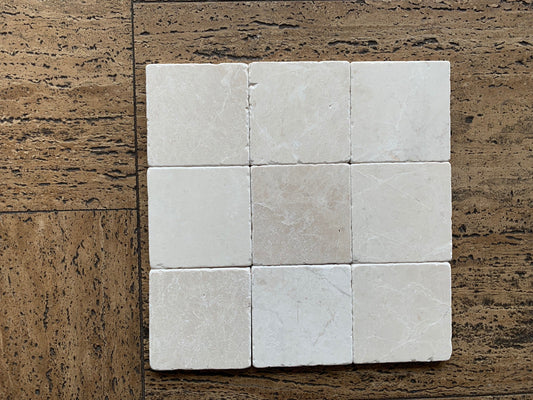 Noble White Cream Marble Tile 6x6 3/8 Tumbled