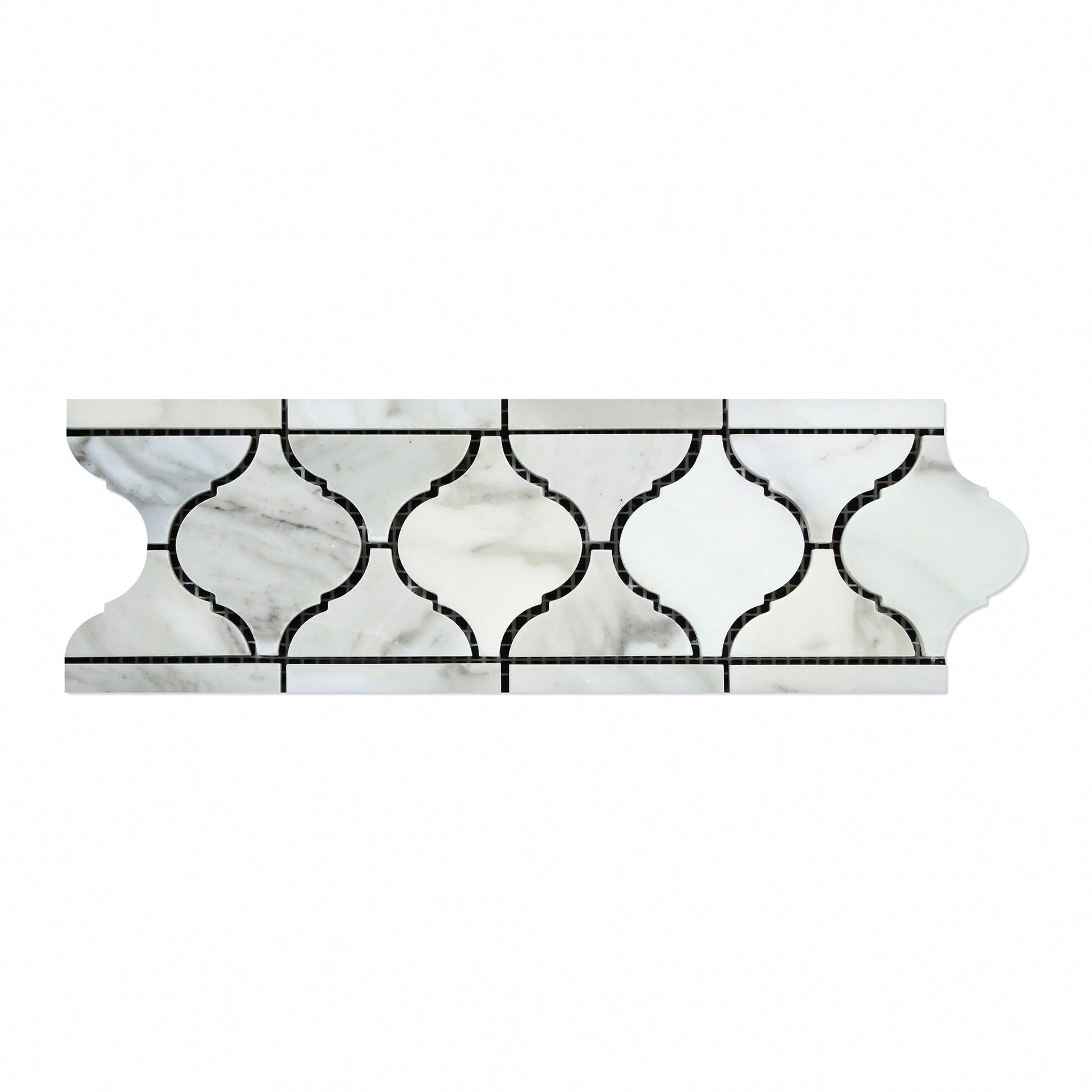 Azulejo para pared y piso con borde arabesco dorado Calacatta de 9,5 x 29,5 cm