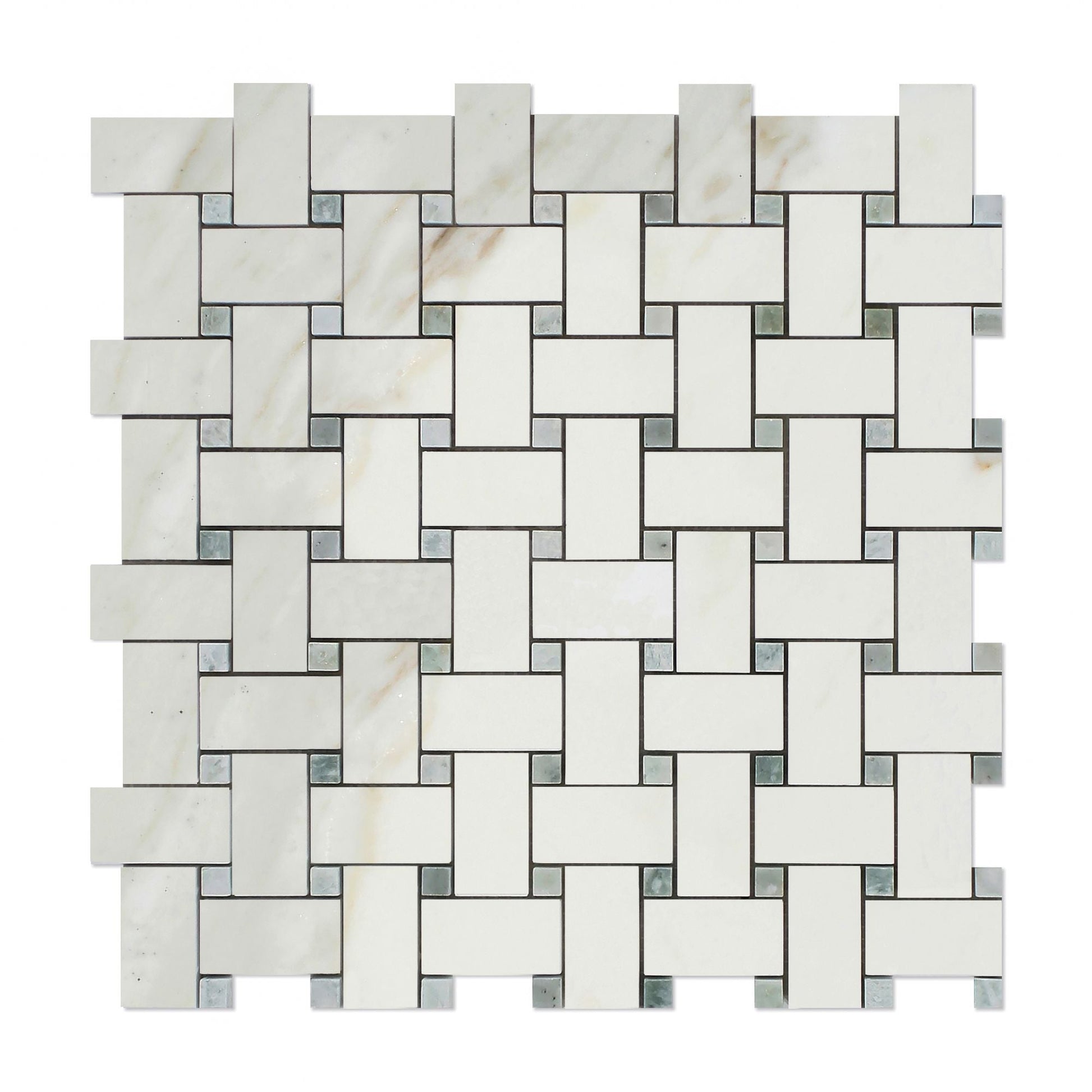 | Nombre del producto | Mosaico de tejido de canasta de mármol Calacatta Gold (italiano) con puntos verdes Ming - 3/8 |