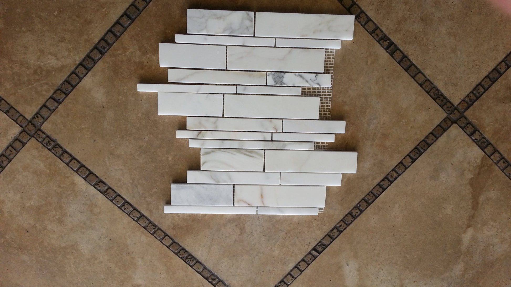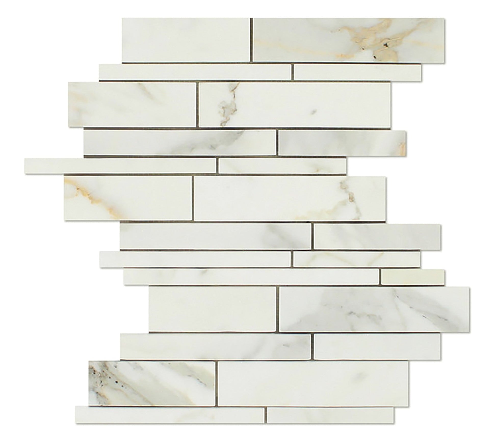 Azulejo de pared con salpicadero de mosaico de tiras aleatorias Calacatta Gold Manhattan