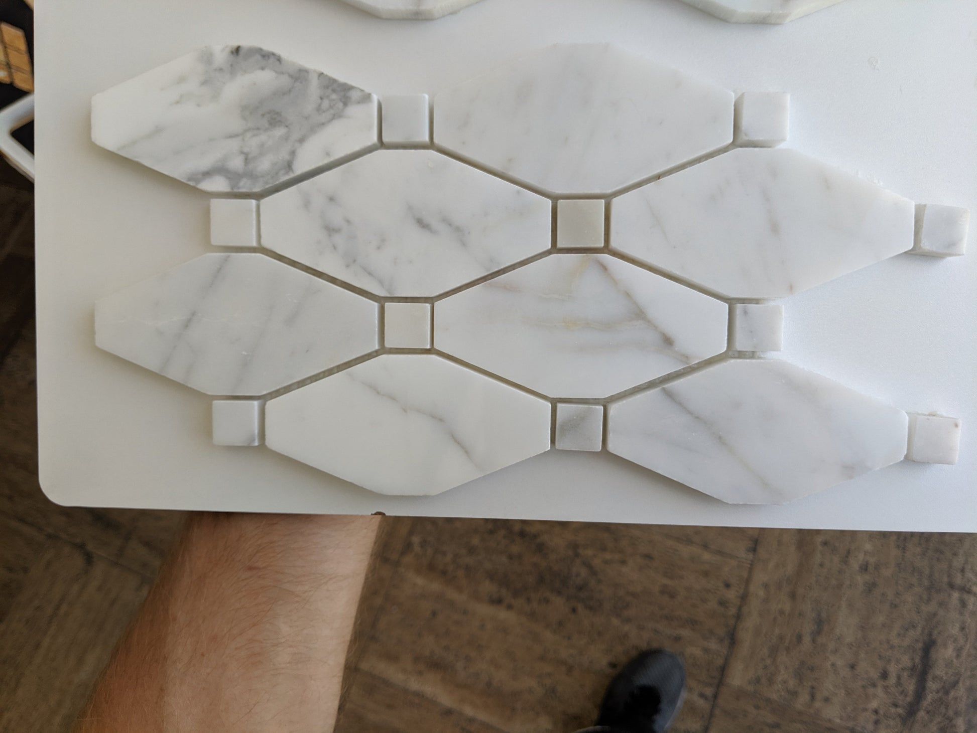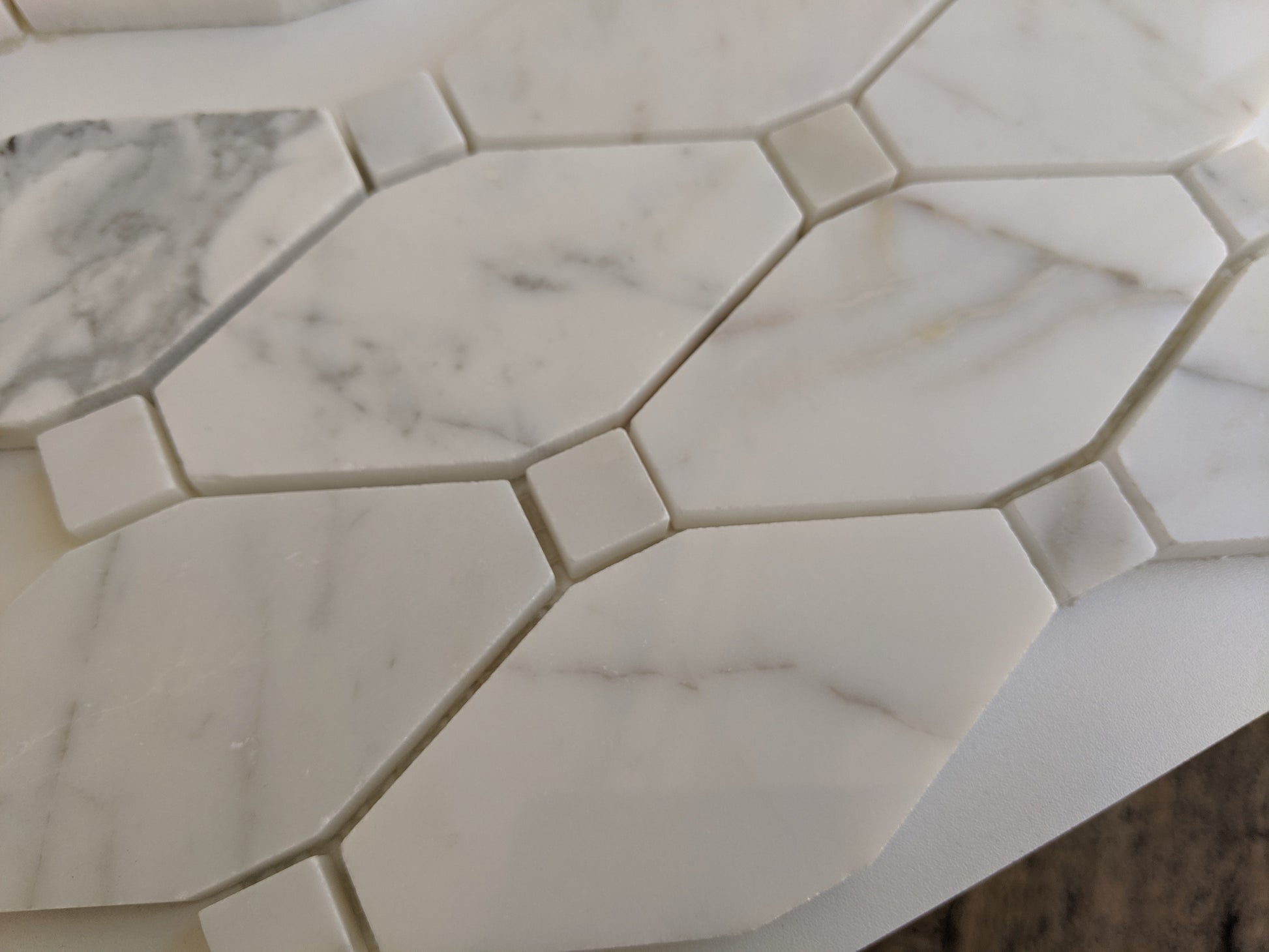 Octava de mármol Calacatta Gold (italiano) (octágono largo) con mosaico de Calacatta