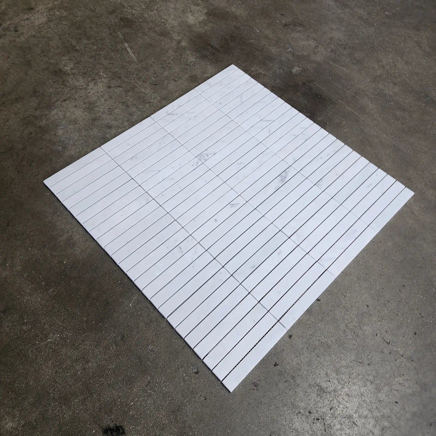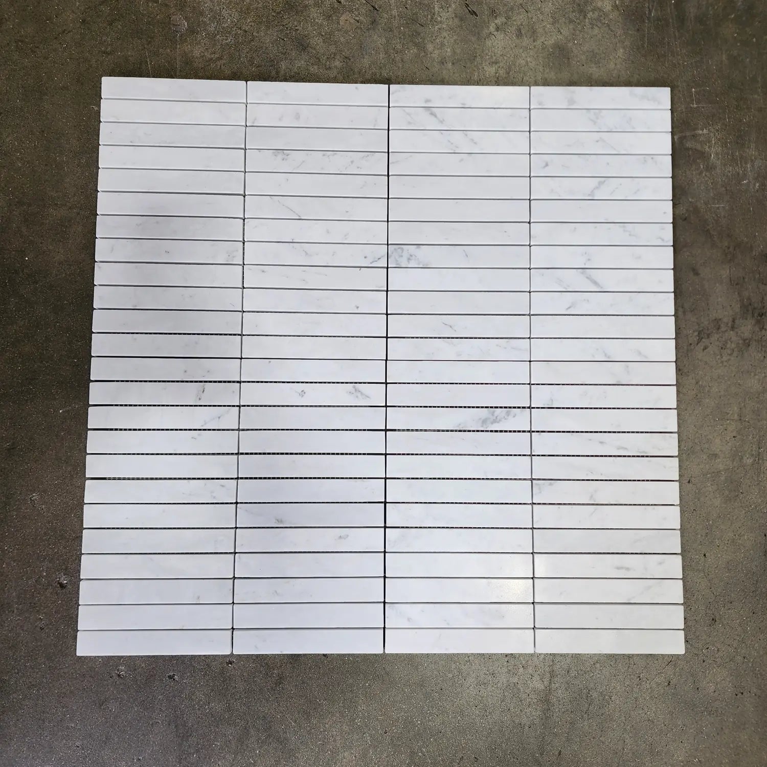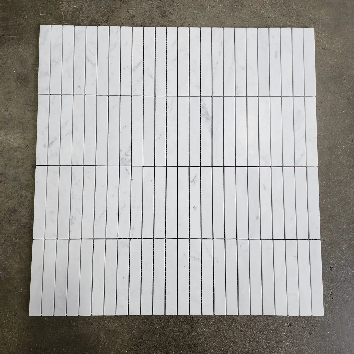 Azulejo de pared con mosaico italiano apilado de Carrara, 2,5 x 15 cm