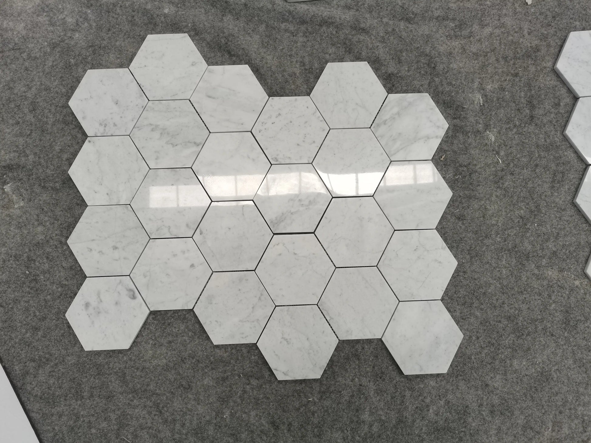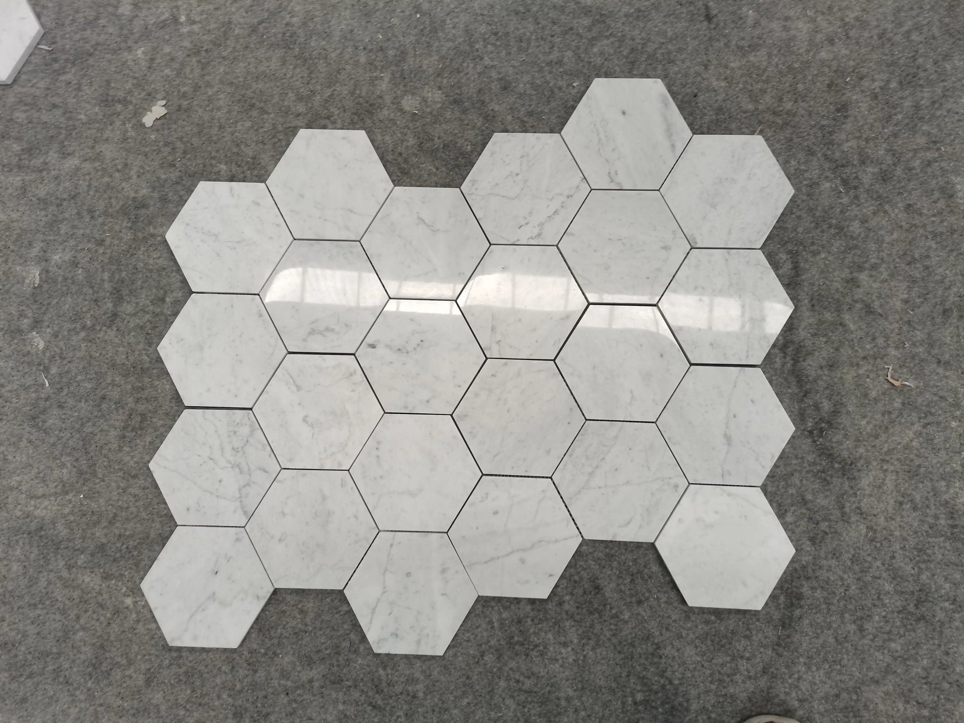 Mosaico hexagonal italiano Carrara para salpicadero y pared (5")