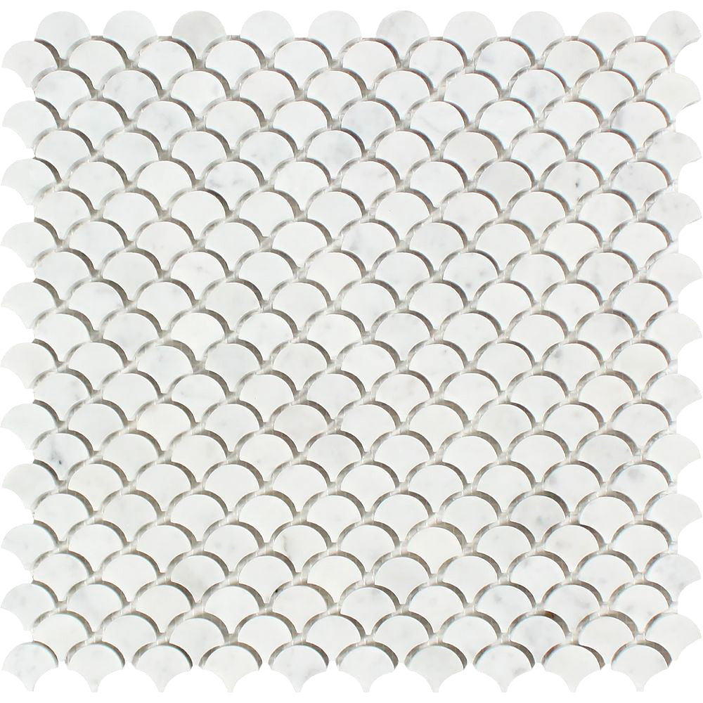 Azulejo de pared y salpicadero de mosaico con escamas de pescado italianas de Carrara