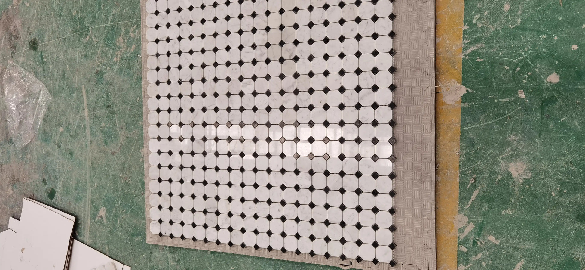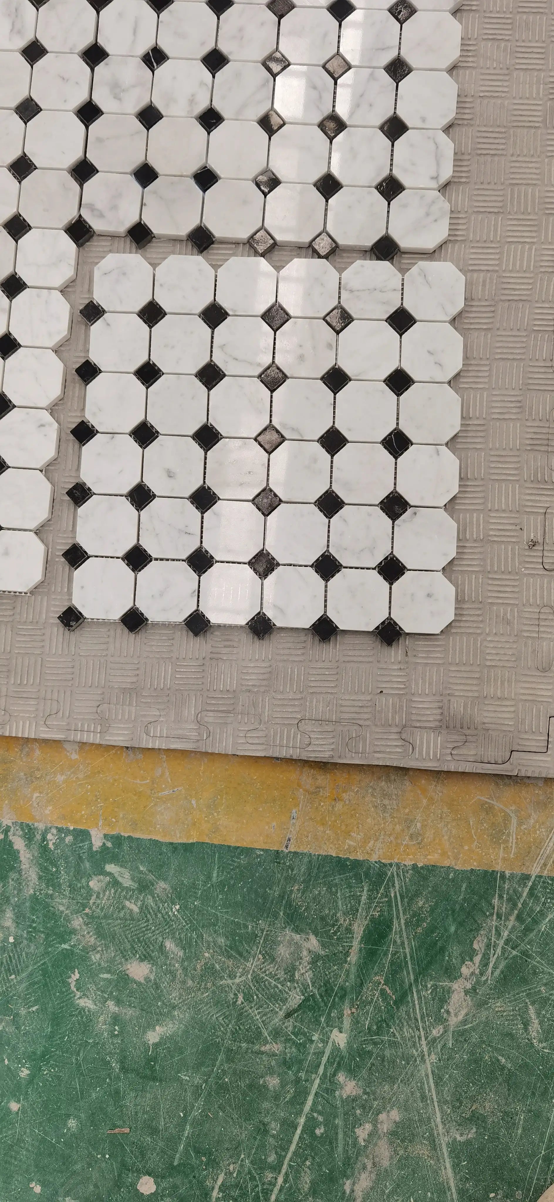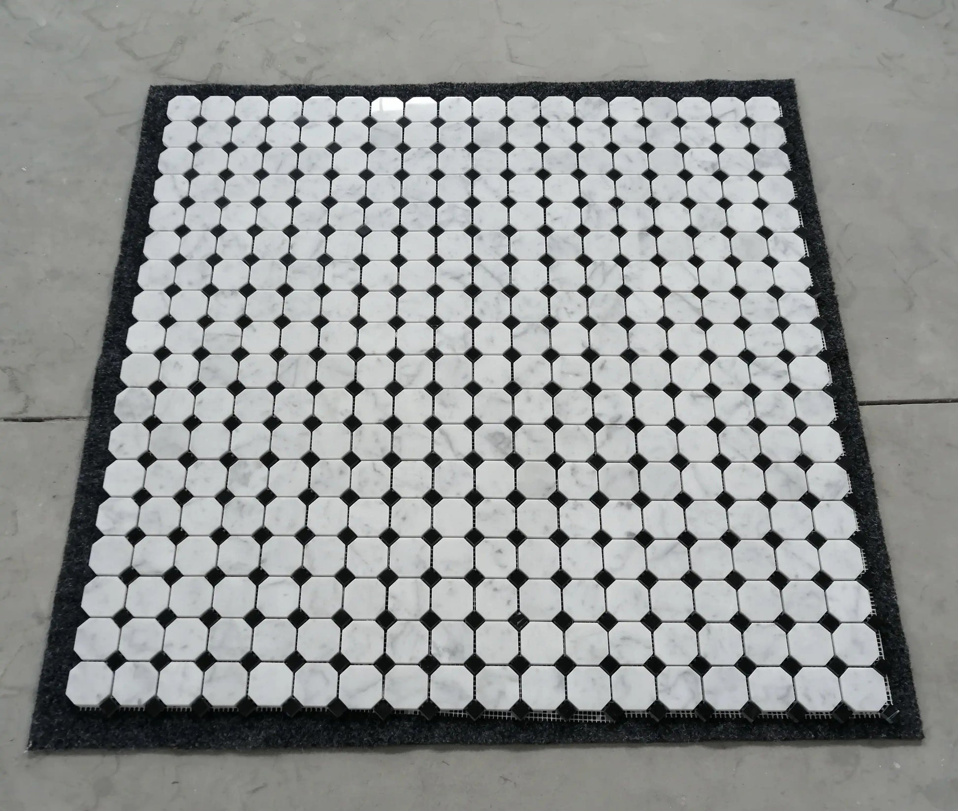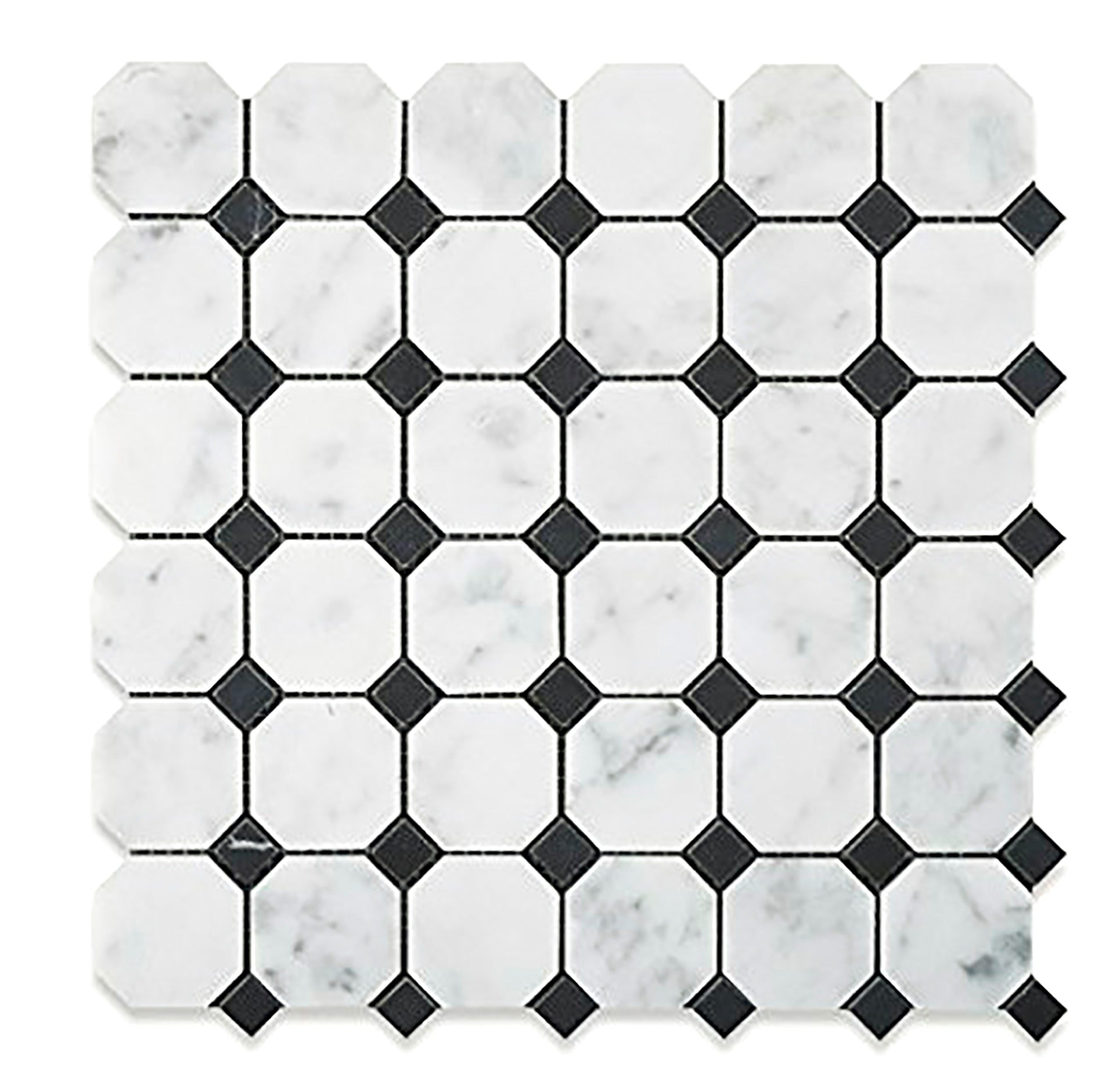 | Nombre del producto | Mosaico octogonal de mármol blanco de Carrara (italiano) con puntos negros de 3/8" |