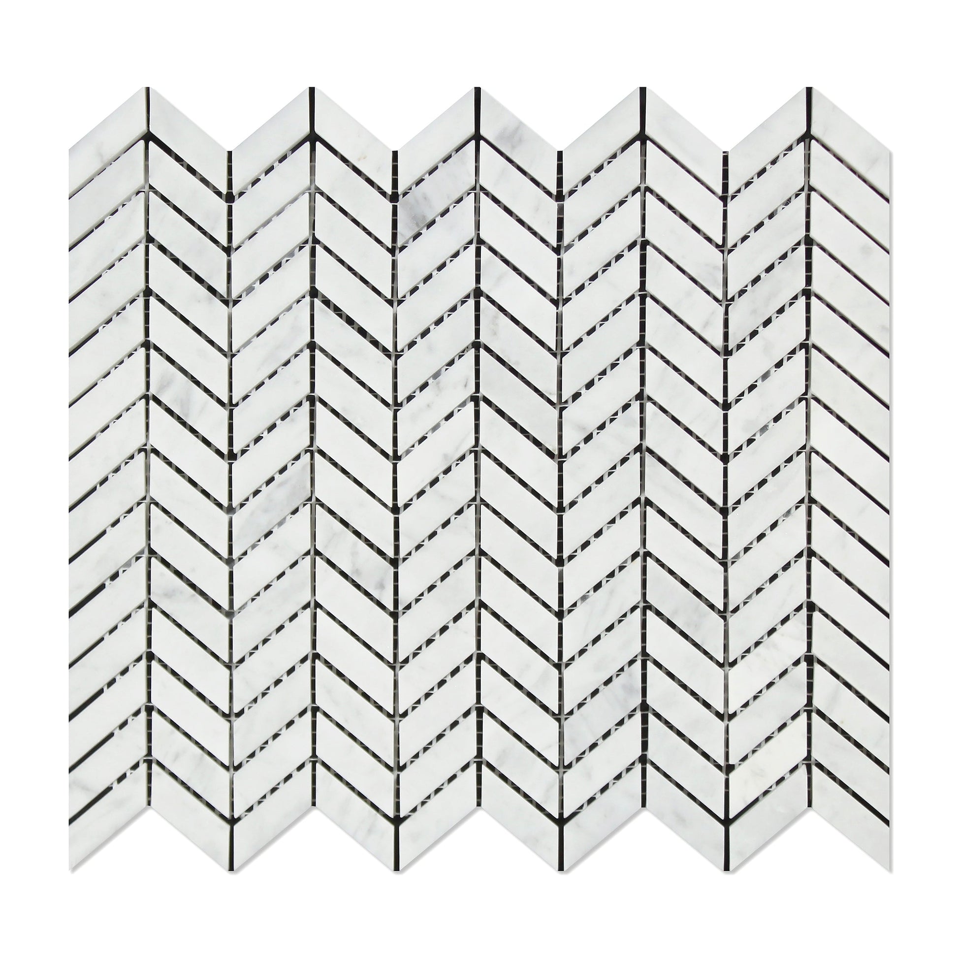 Azulejo de pared y salpicadero de mosaico italiano Mini Chevron de Carrara