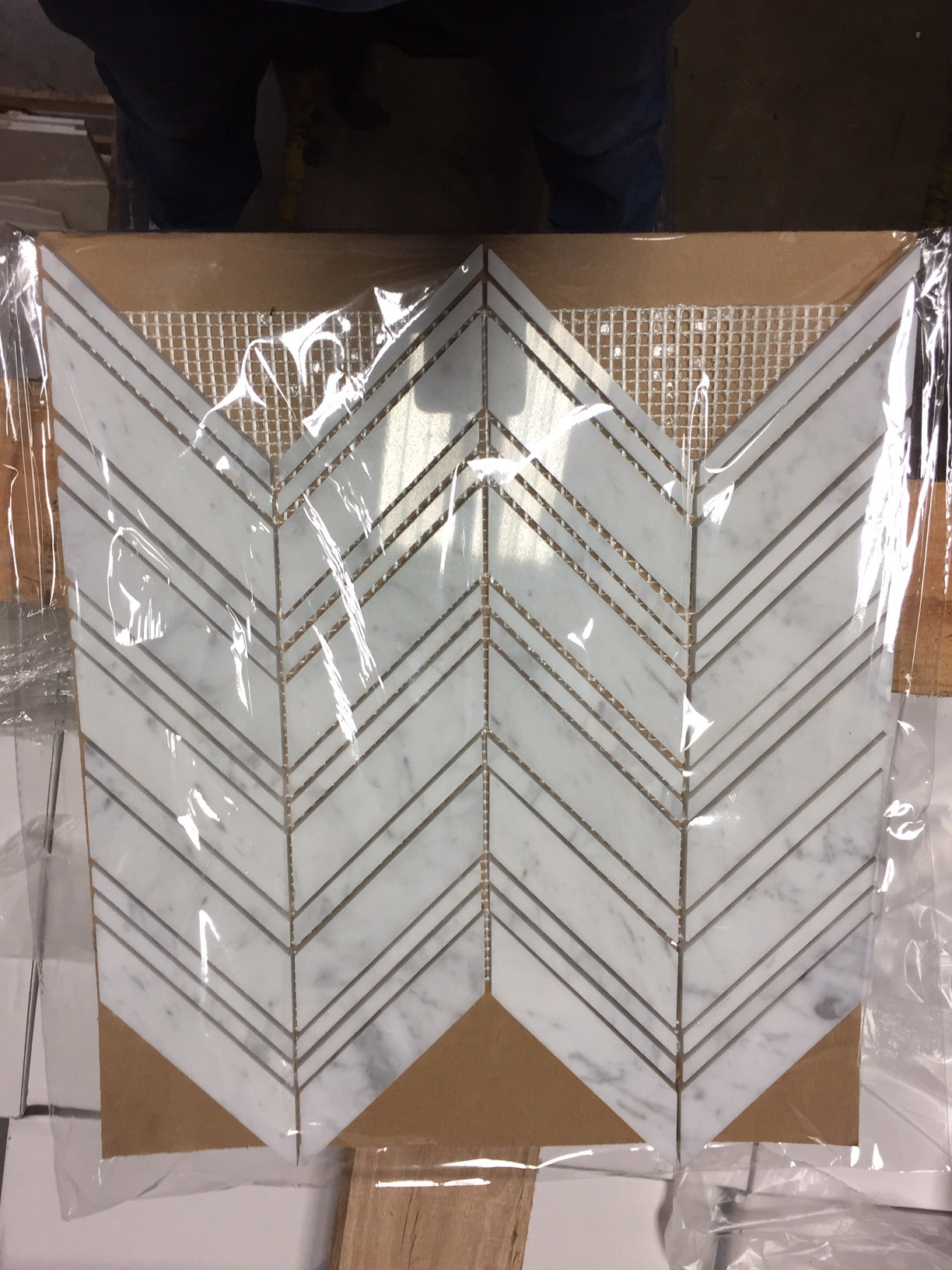 | Nombre del producto | Mosaico de mármol blanco Carrara (italiano) Chevron - GRANDE (color único: Carrara) 3/8 |