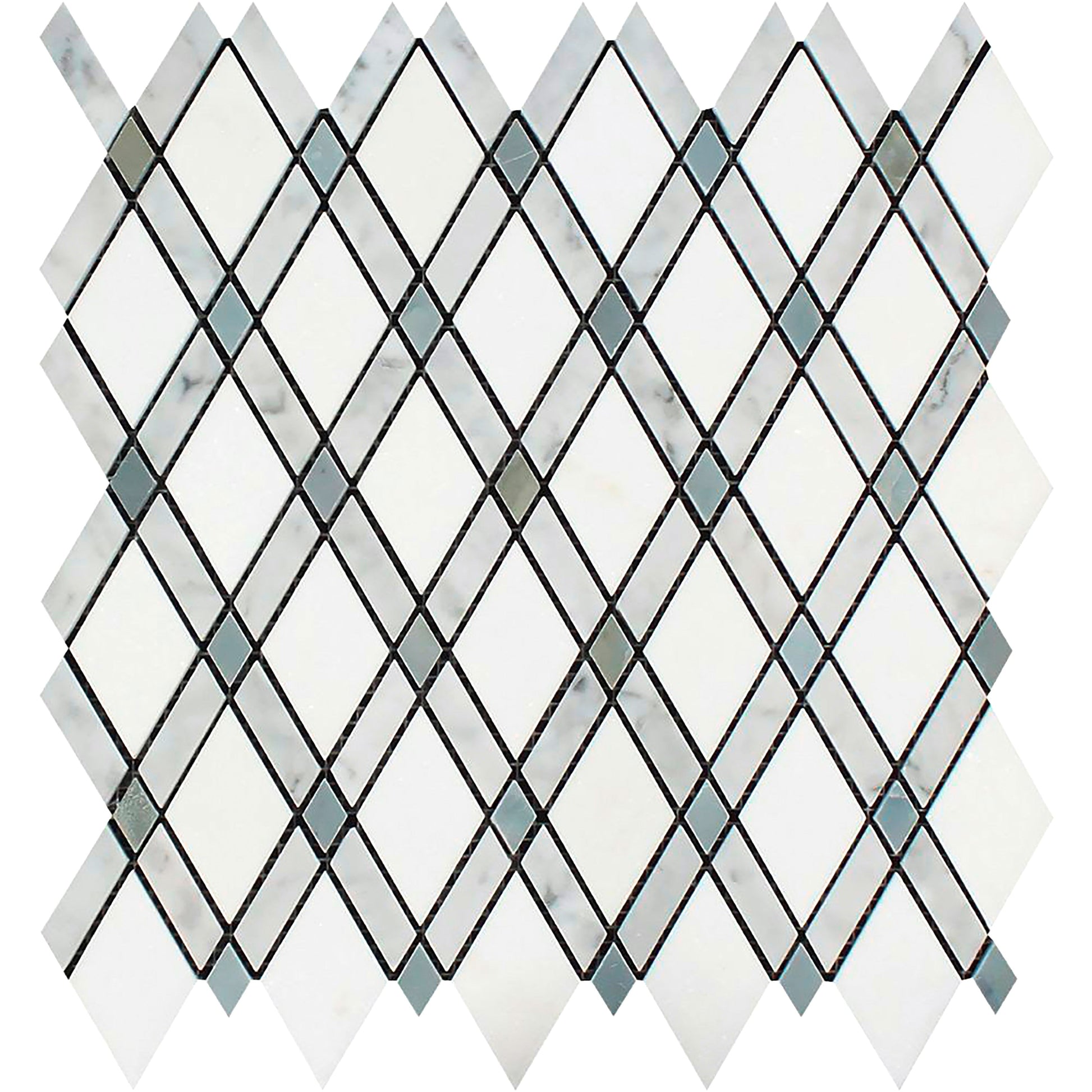 El mármol blanco Carrara (italiano) es famoso por sus revestimientos para salpicaderos de cocina y azulejos para suelos de ducha. Gracias a sus detalles en blanco, azul y gris, el mosaico Carrara Italian Lattice con revestimiento para salpicaderos de mosaico azul y gris, así como los azulejos para paredes y suelos, ha cubierto miles de espacios con diseños de azulejos para baños de ensueño.