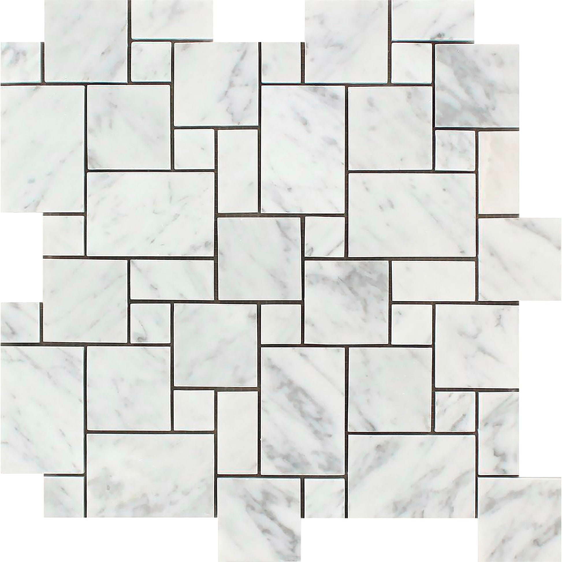 | Nombre del producto | Mosaico de mármol blanco de Carrara (italiano) con diseño mini-Versalles de 3/8" |