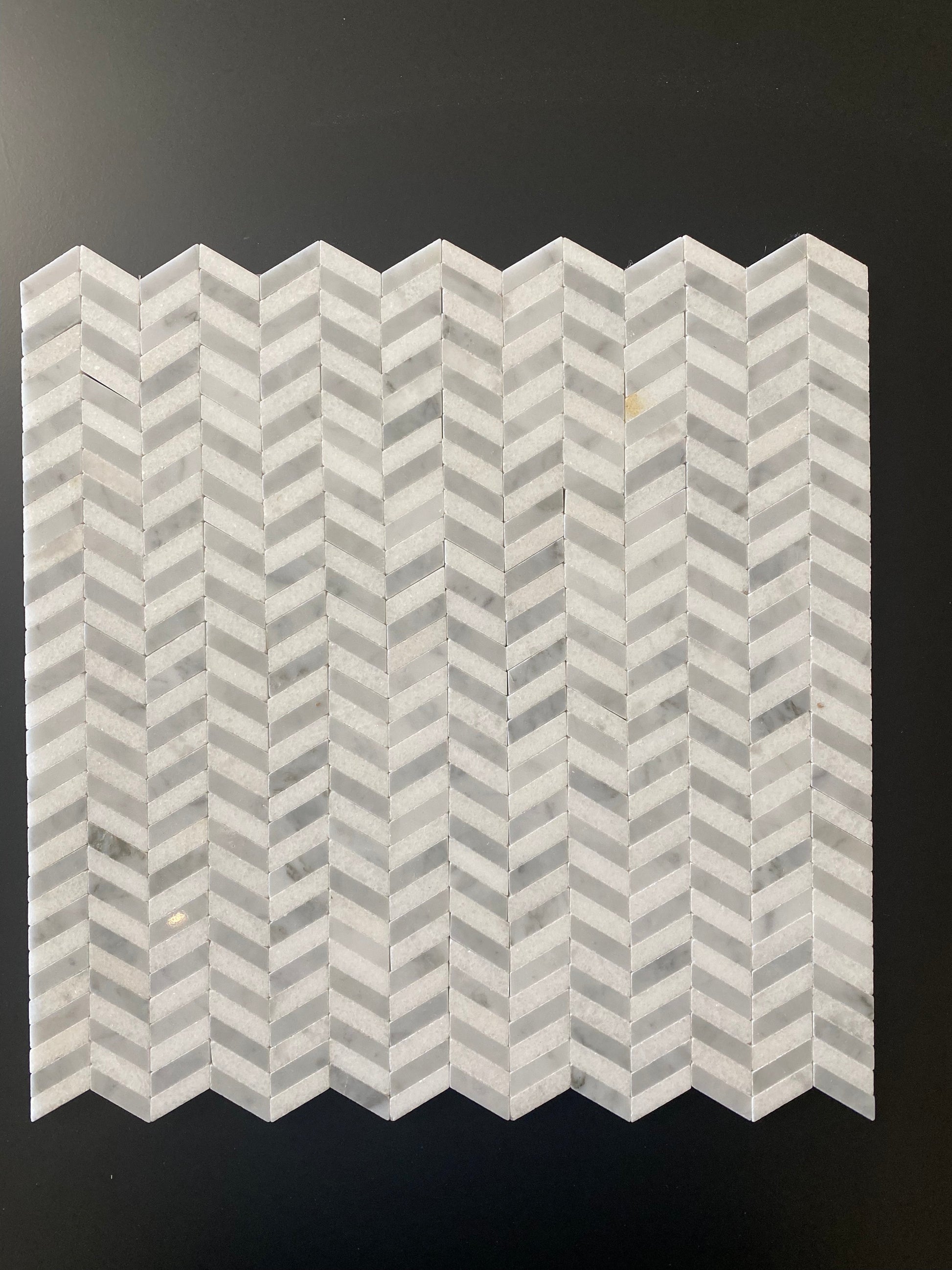 | Nombre del producto | Mosaico mini-chevron pulido de Carrara y Thassos | |