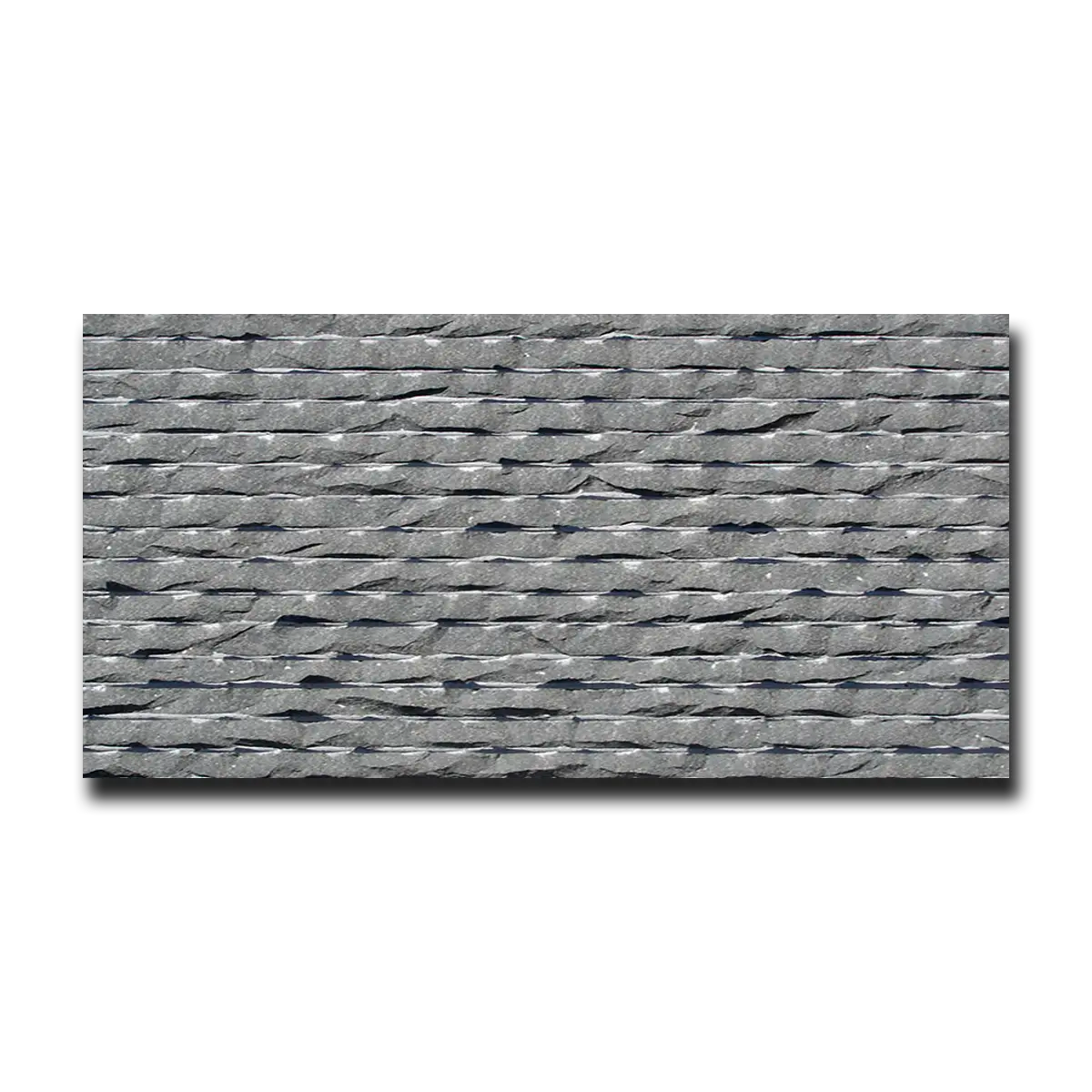 Azulejo de basalto gris flameado y ondulado de 12" x 24"