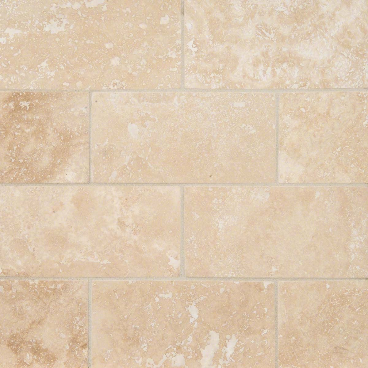 El travertino marfil/claro se utiliza como mosaico para baños y salpicaderos de cocina. El azulejo de travertino marfil relleno y pulido para paredes y pisos de 7,6 x 15,2 cm tiene un color claro específico que combina a la perfección con cualquier diseño de ducha y mosaico de Home Depot.