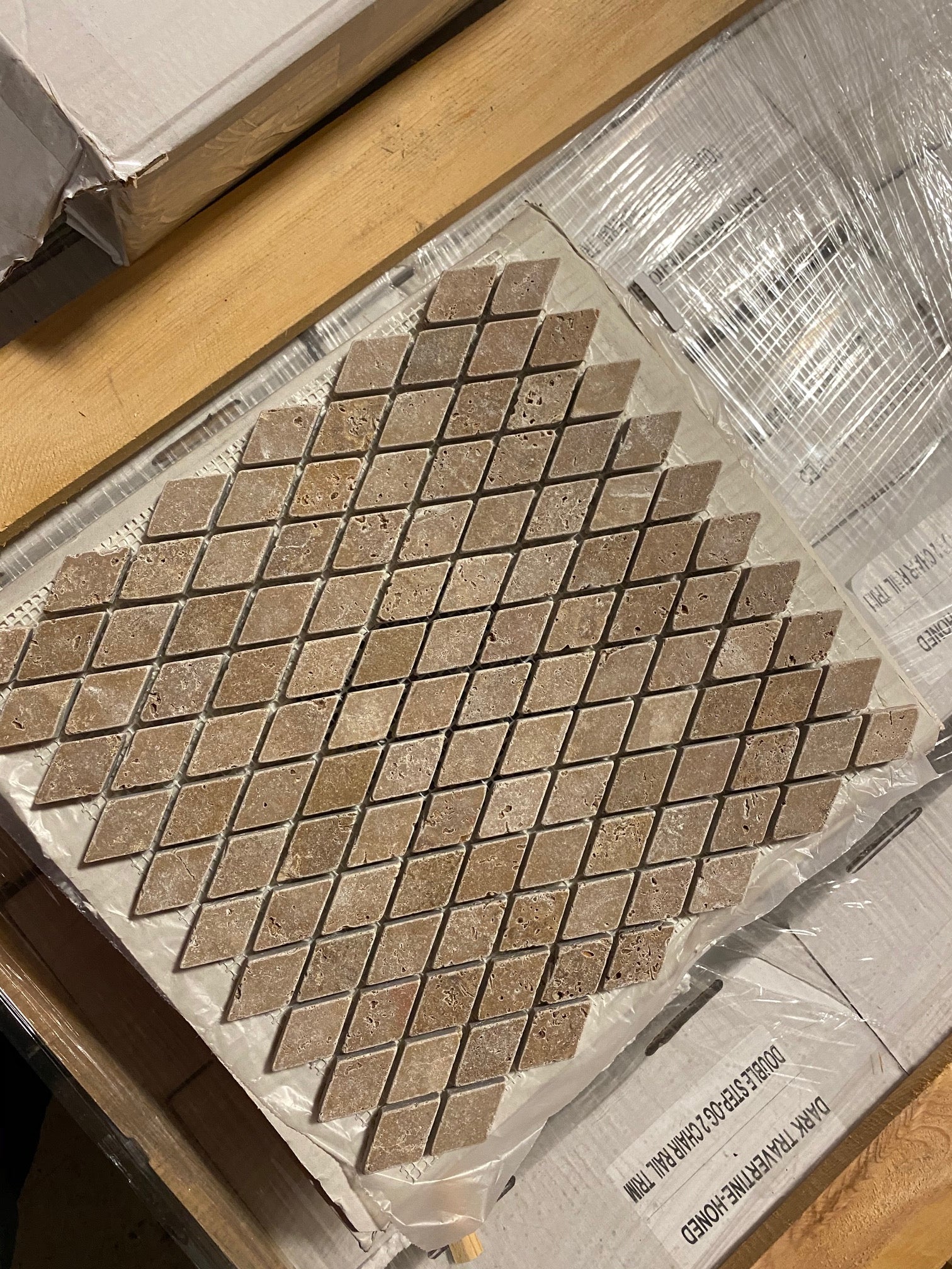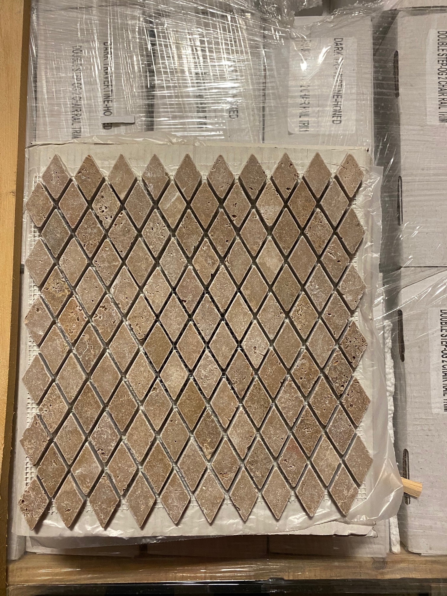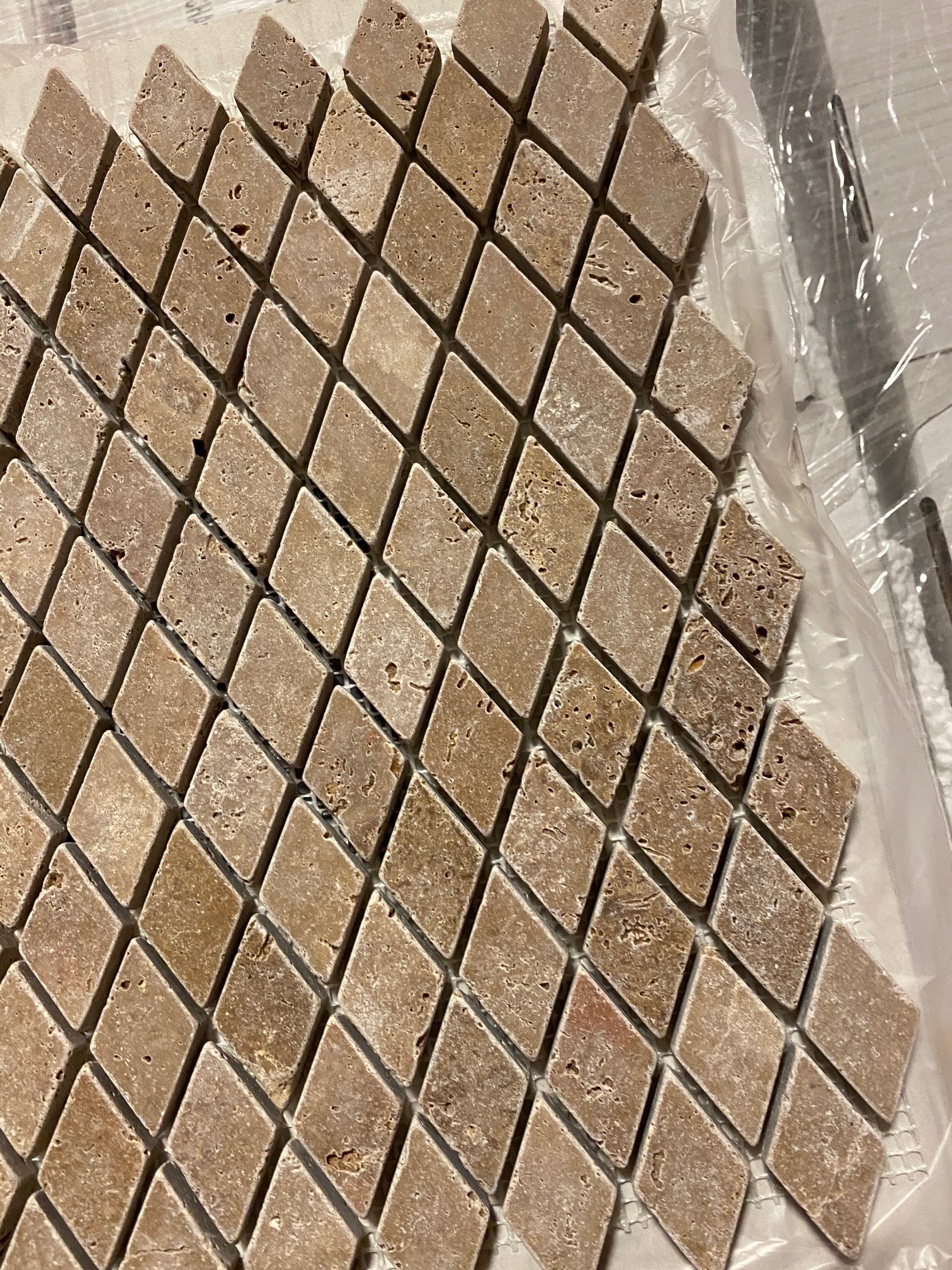Azulejo de mosaico de travertino Noce con efecto diamante, 1 x 2 pulgadas