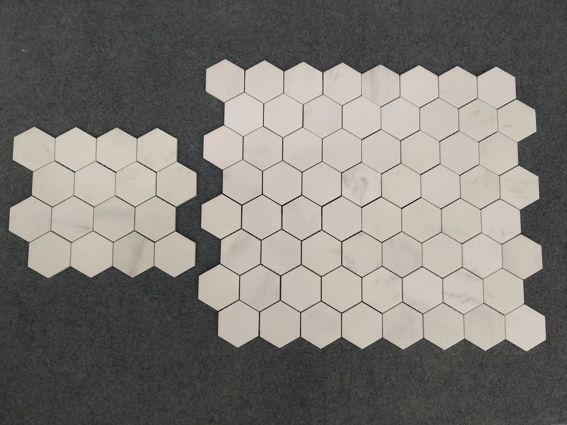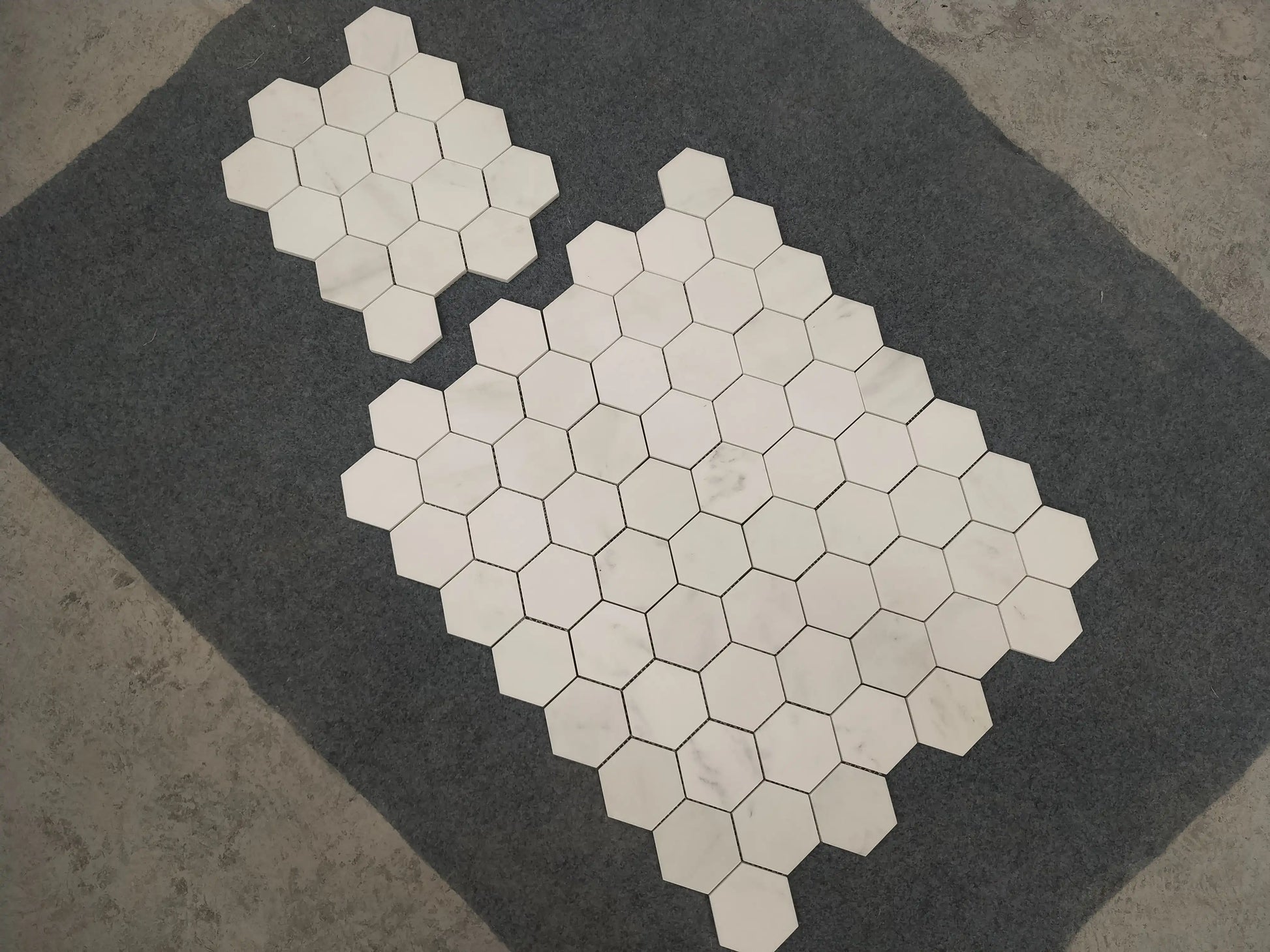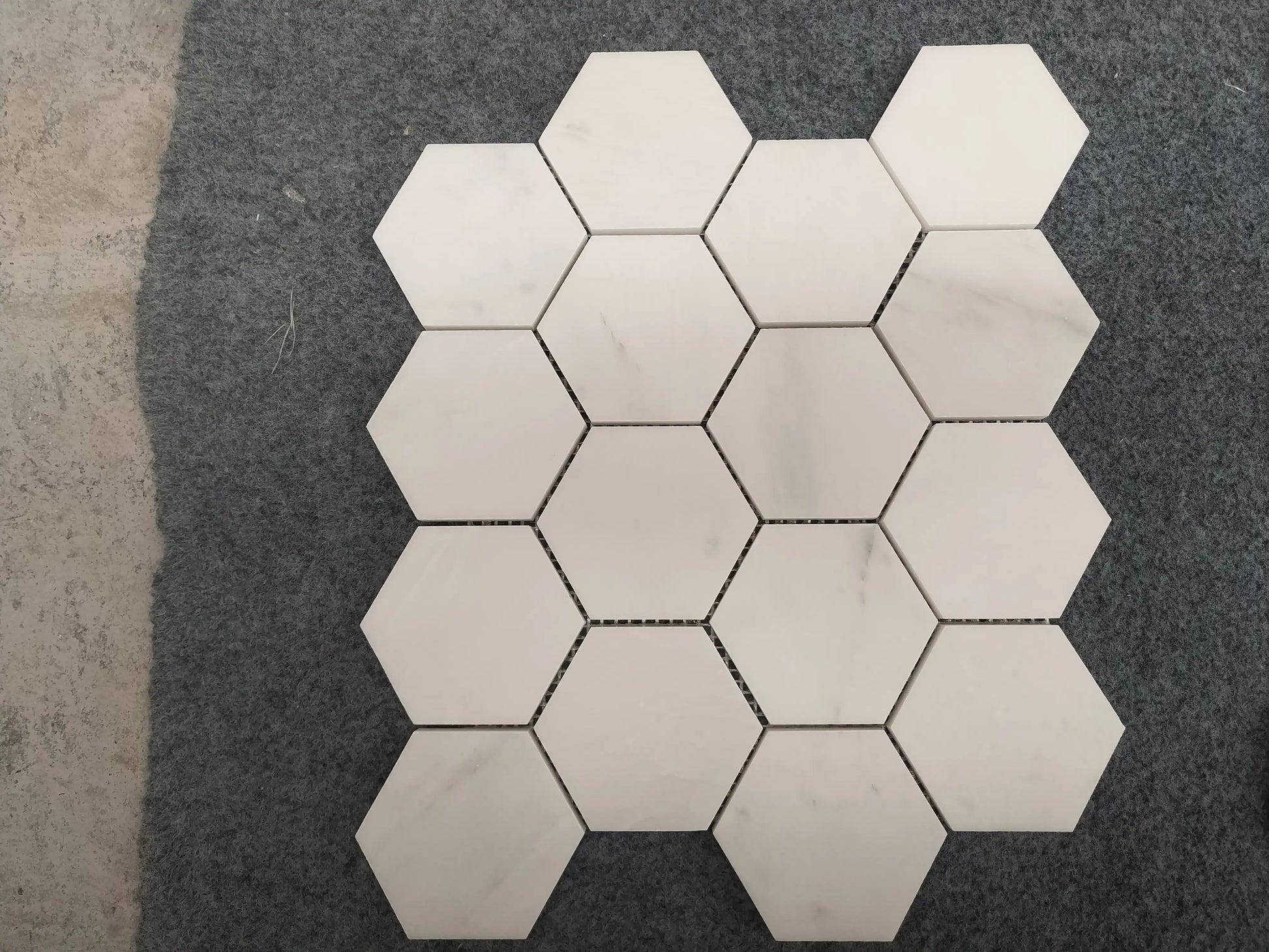 | Nombre del producto | Mosaico hexagonal de mármol blanco oriental (estatuas asiáticas) de 3 x 3 3/8 |