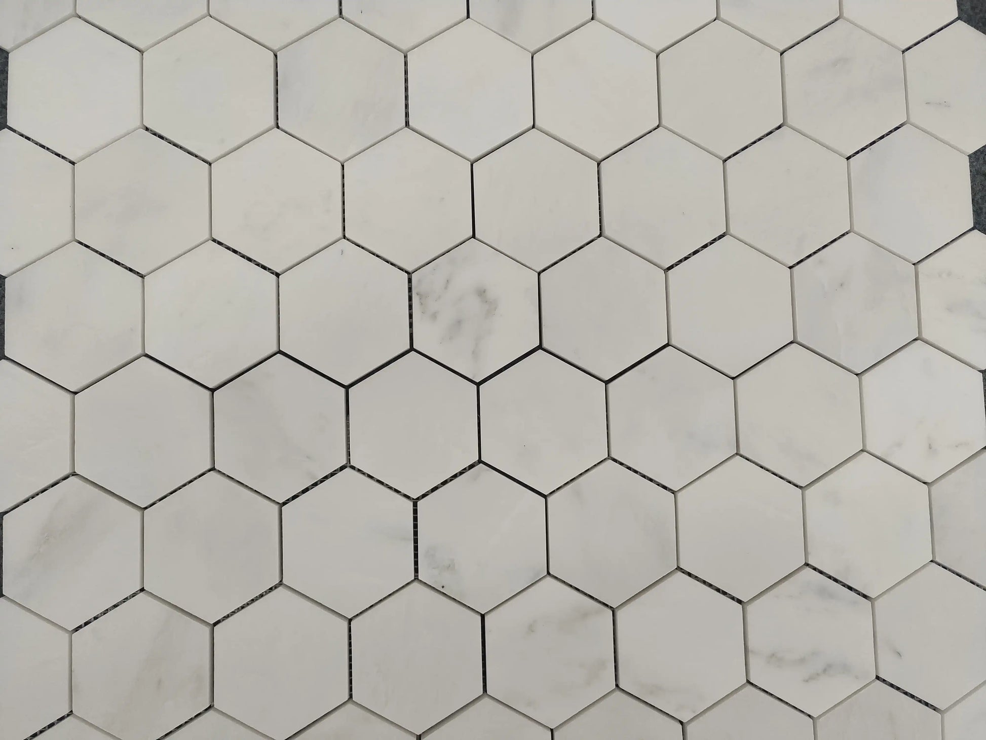 Desde las montañas más imponentes de Asia hasta tu espacio, el revestimiento para salpicadero de cocina de mármol Blanco Oriental (Bianco Bello) y el mosaico para suelos embellecerán tu diseño interior. Mosaico hexagonal Blanco Oriental de 7,6 x 7,6 cm. & Floor Mosaic es un mosaico que tiene pequeñas vetas crema suaves y delgadas oscuras.