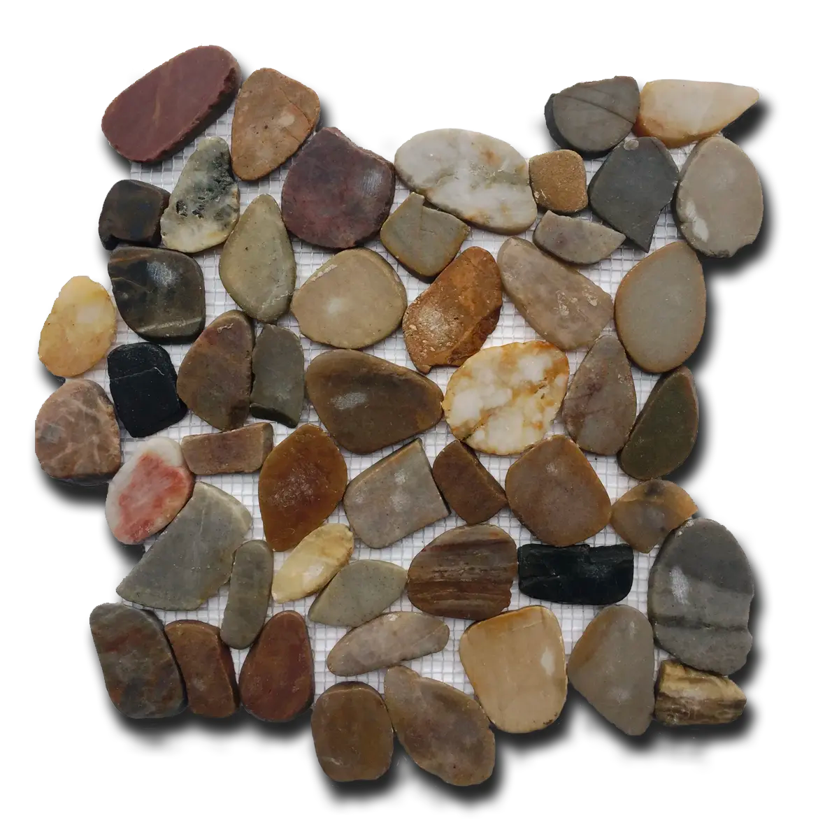 Mosaico de guijarros planos de color oscuro mixto de 30 x 30 cm
