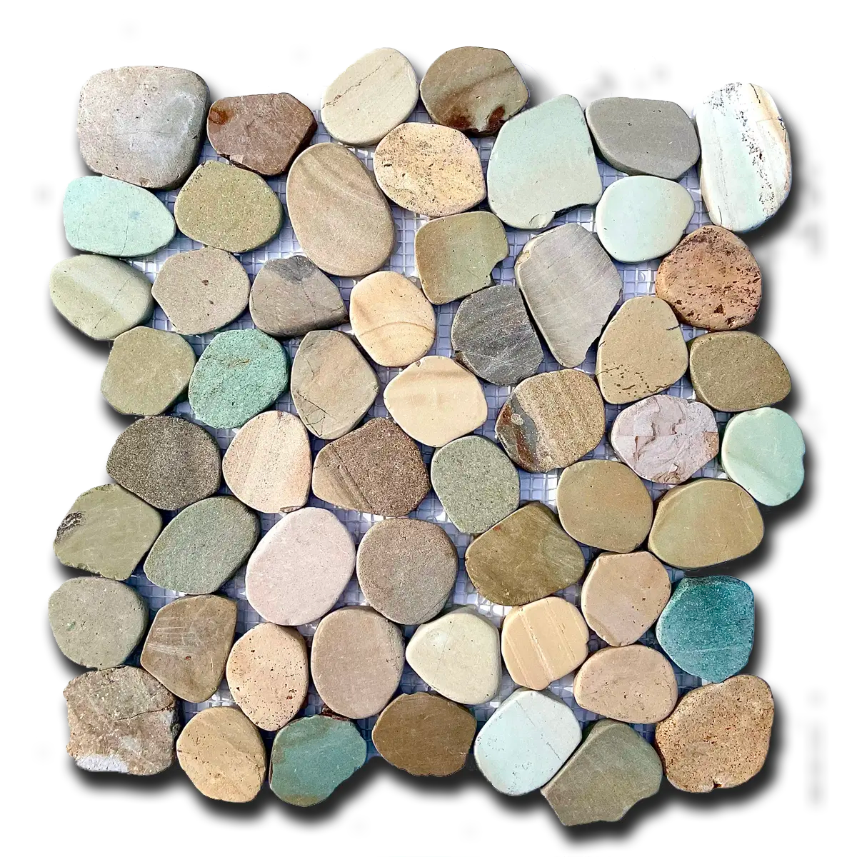 Mosaico de guijarros planos de colores mezclados mate de 30 x 30 cm