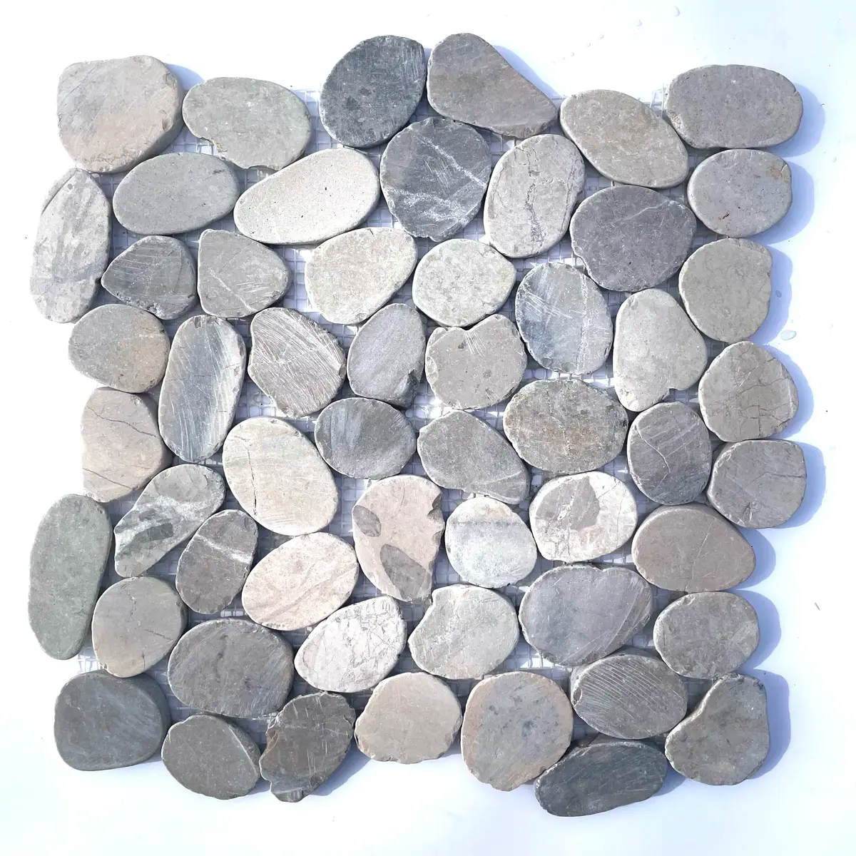 Mosaico de guijarros planos grises de mezcla especial de 30 x 30 cm