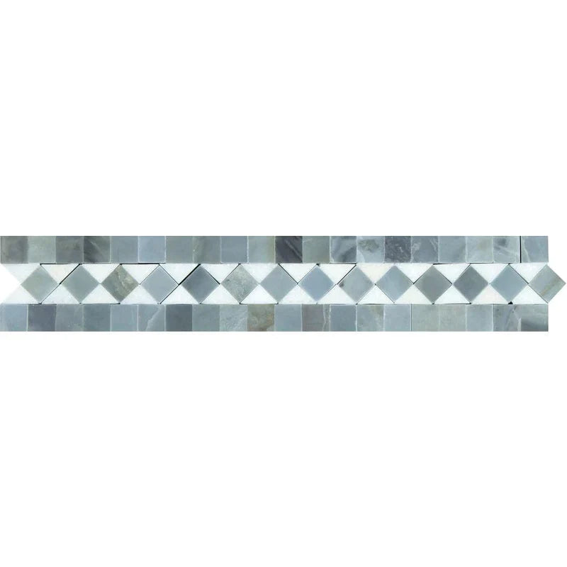| Nombre del producto | Mármol blanco Thassos de 2" x 12" 3/8" Borde bies con puntos azul grisáceos pulidos |