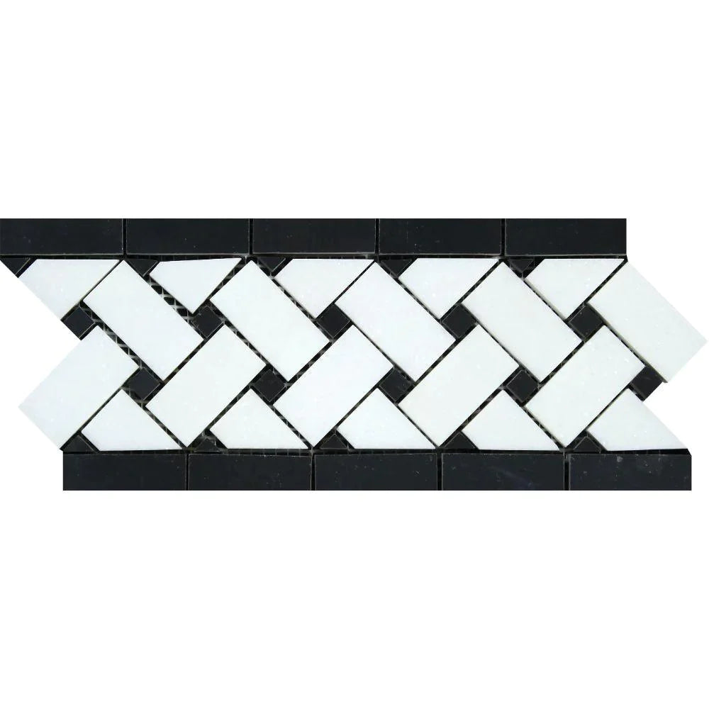 | Nombre del producto | Mármol blanco Thassos 4 3/4" X 12" 3/8 Pulido Tejido de cesta Borde con puntos negros |