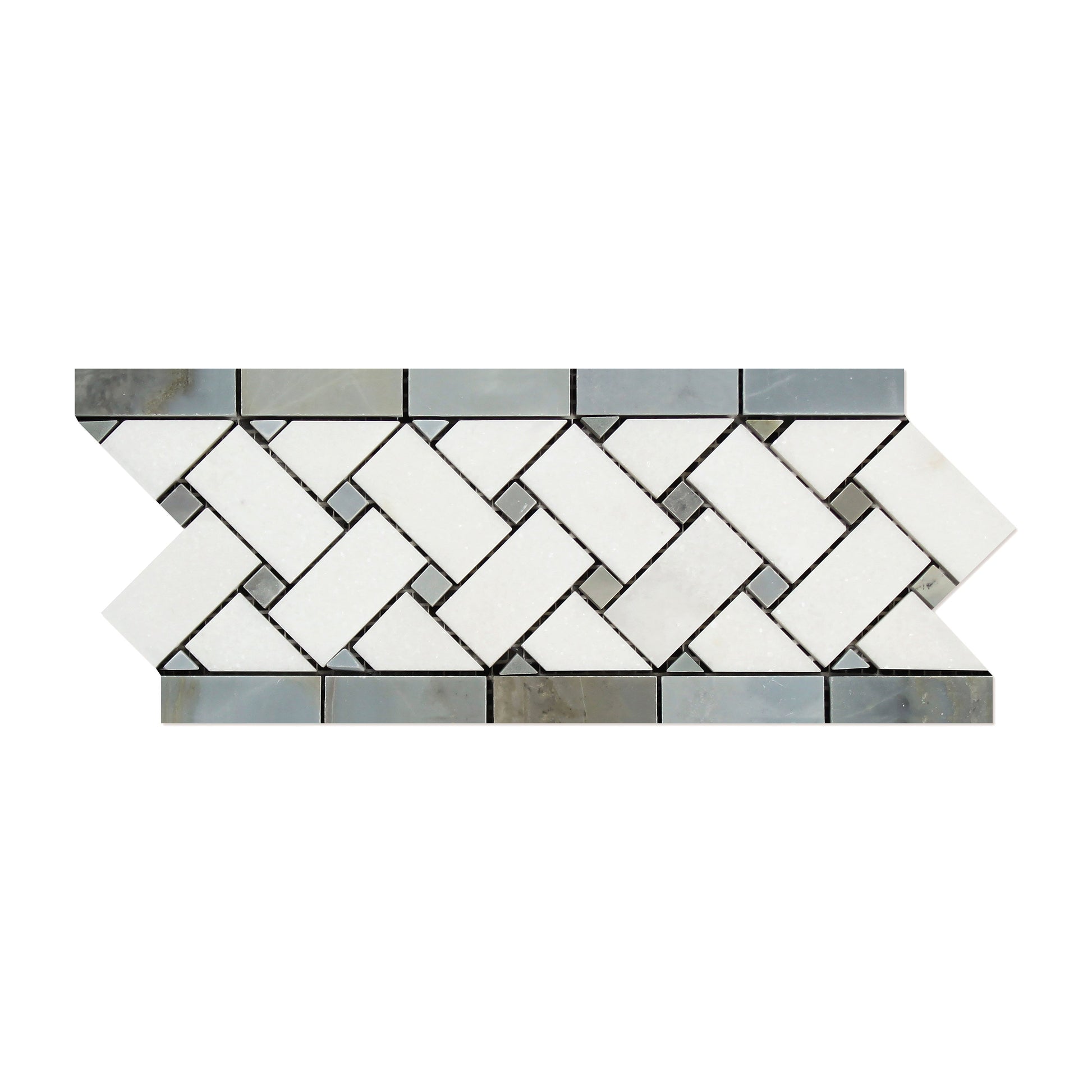 | Nombre del producto | Tejido de cesta pulido blanco Thassos con borde azul grisáceo |