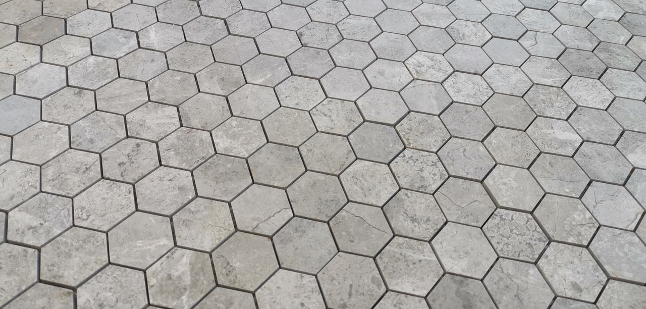 Mosaico hexagonal de mármol gris tundra de 5 x 5 cm