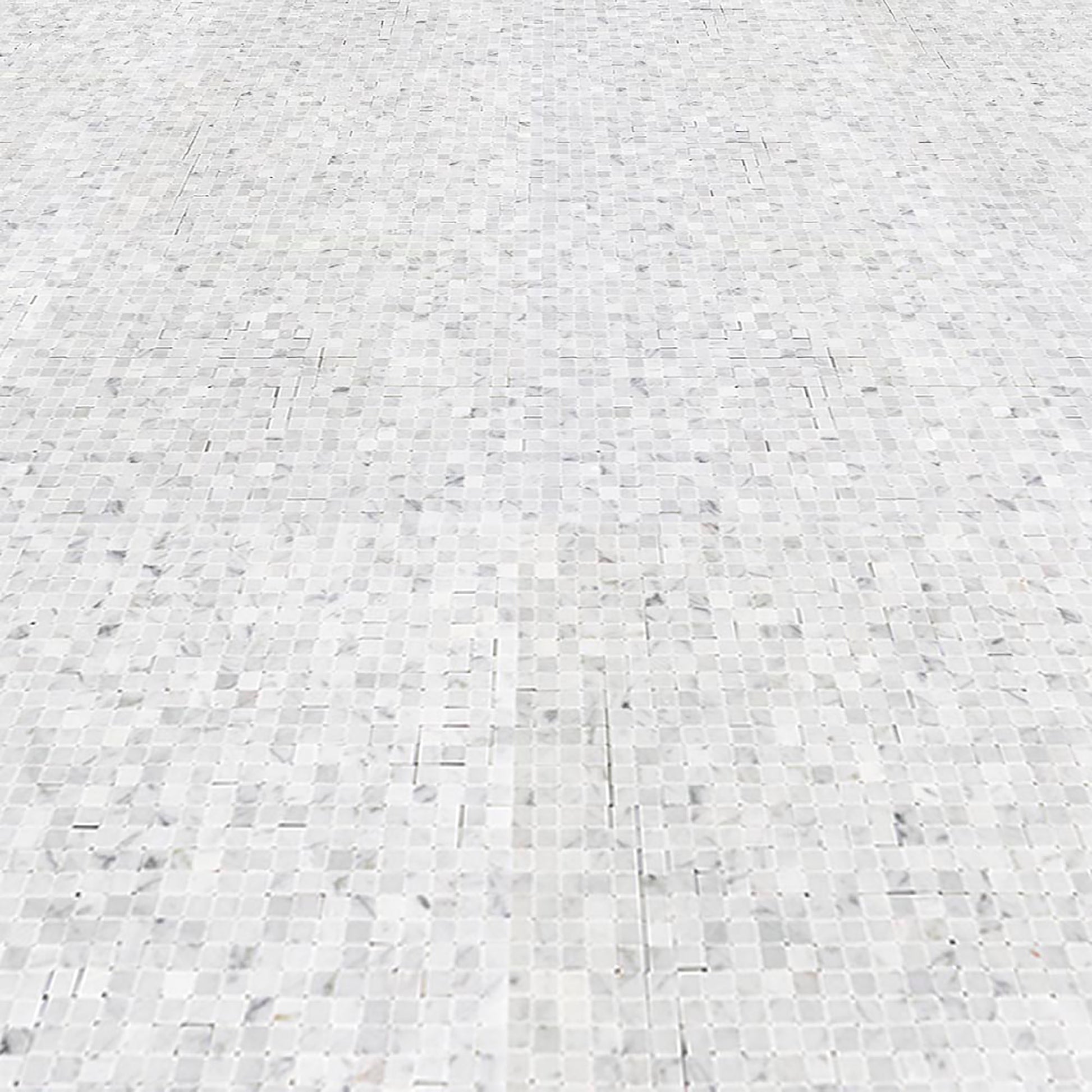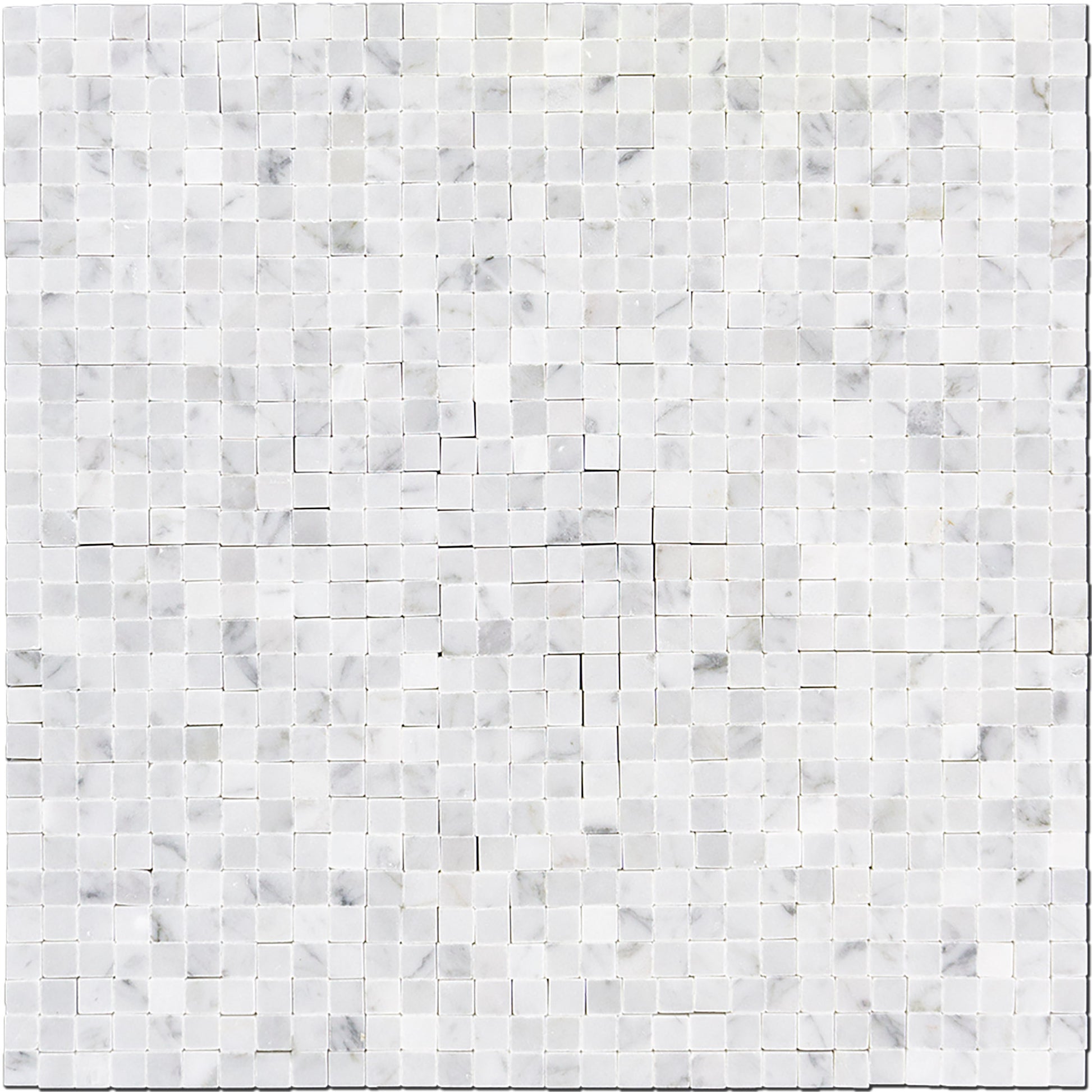 Mosaico de mármol entrelazado de Carrara de 3/8" x 3/8" pulido, 12" x 12" y 3/8" con chorro de agua