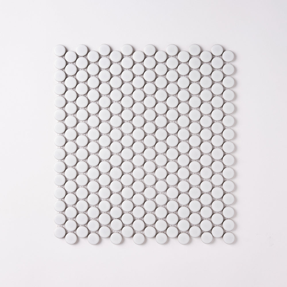 Azulejo de mosaico de porcelana italiana blanca con diseño de centavos, redondo, brillante y pulido, para salpicadero.