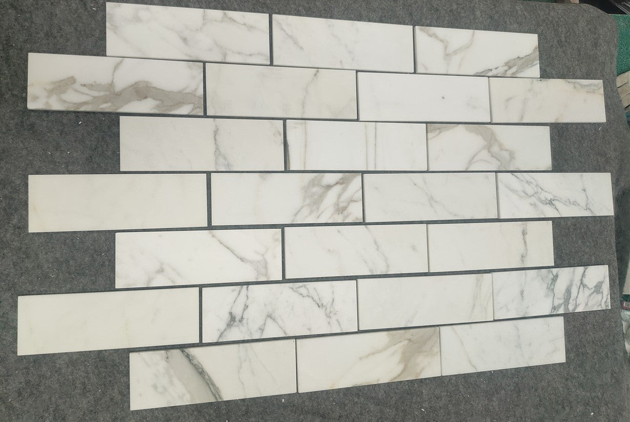 Calacatta Gold Marble mosaic tile stands out with its precious and unique gold-grey veins on white background. Our backsplash kitchen tiles, - Calacatta Gold Wall and Floor Backsplash Wall Tile 4x12" & Floor Mosaic, can also be installed on any wall tiles, bathroom tiles, and shower floor tile. This natural stone will bring Italian vouge into your home.