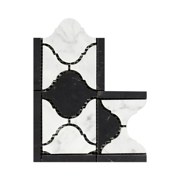 Carrara Italian White Arabesque Lantern Corner Border with Black