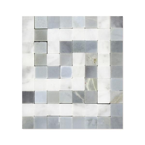 Carrara White (Italian) Marble is popularly used as kitchen backsplash tile and shower floor tile in our previous projects. Since it has white, blue, and grey features in it, our 3 1/2" x 7" Greek Key Border (w/ Blue-Gray) - Polished Backsplash Tile & Floor Mosaic has covered thousands of spaces in many dream bathroom tile designs.