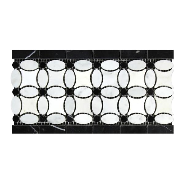 | Product Name | Carrara White (Italian) Marble Florida Flower Border (Thassos + White Carrara (Oval) + Black (Dots)) 5 3/4x11 1/4 3/8 |