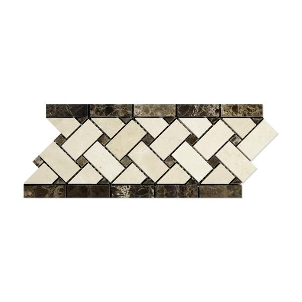 Crema Marfil Polished w/Emp Dark Basketweave Border Tile 4 3/4x12"