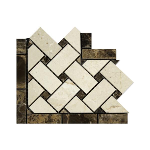 Crema Marfil Polished Basketweave w/ Emp. Dark Border Corner Tile