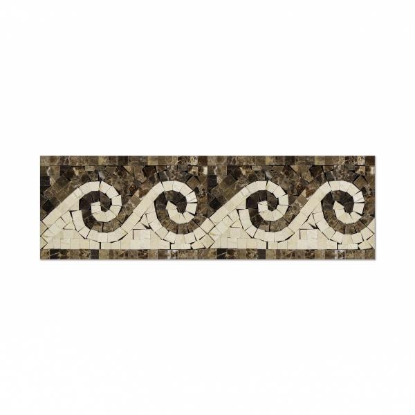 Emperador Dark Polished Wave Border w/Crema Marfil 3 7/8x12"