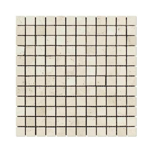 Ivory Travertine Tumbled Square Mosaic Tile 1x1"