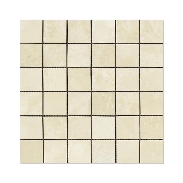 Ivory Travertine Filled & Honed Square Mosaic Tile 2x2"