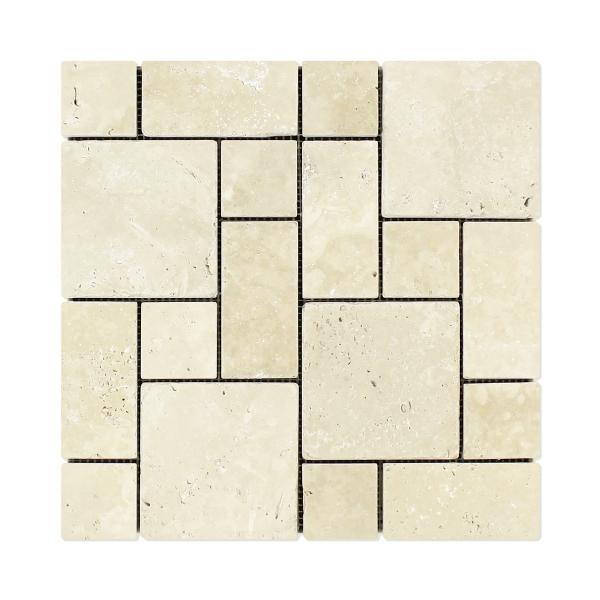 Ivory Travertine Tumbled Mini Versailles 3 pcs Mosaic Tile