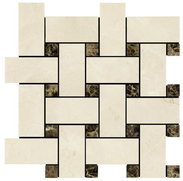 | Product Name | Noble White Cream Marble Basketweave (Large) w/ Emp. Dark Mosaic 2x4+1x1 3/8 |