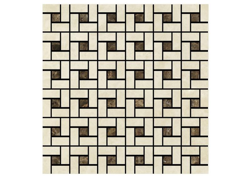 Noble White Cream Pinwheel w/ Emp. Dark Mosaic Tile