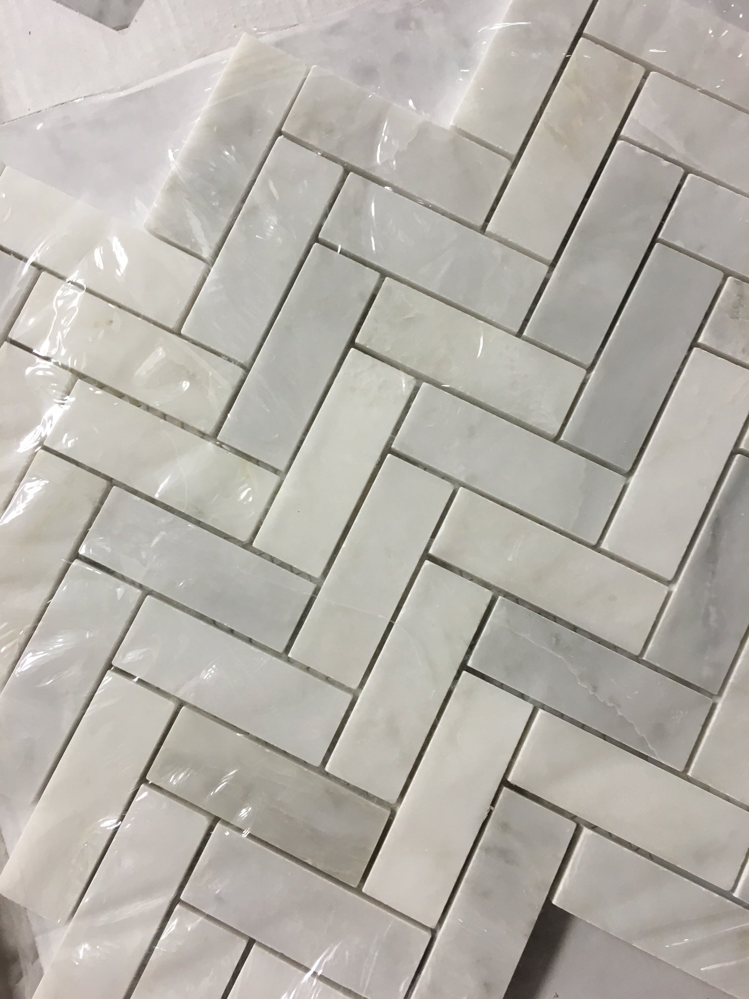 | Product Name | Oriental White (Asian Statuary) Marble Herringbone Mosaic 1x3 3/8 |