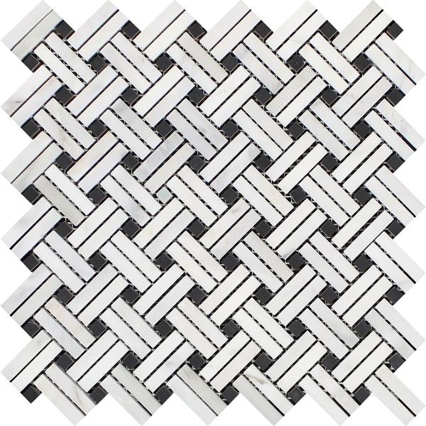 | Product Name | Oriental White (Asian Statuary) Marble Stanza Mosaic w/ Black Dots 3/8 |