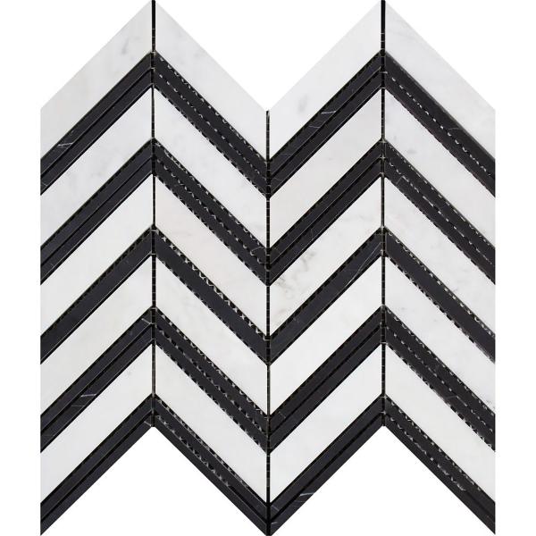 | Product Name | Oriental White (Asian Statuary) Marble Chevron - LARGE (Oriental White + Black (Thin Strips)) Mosaic 3/8 |