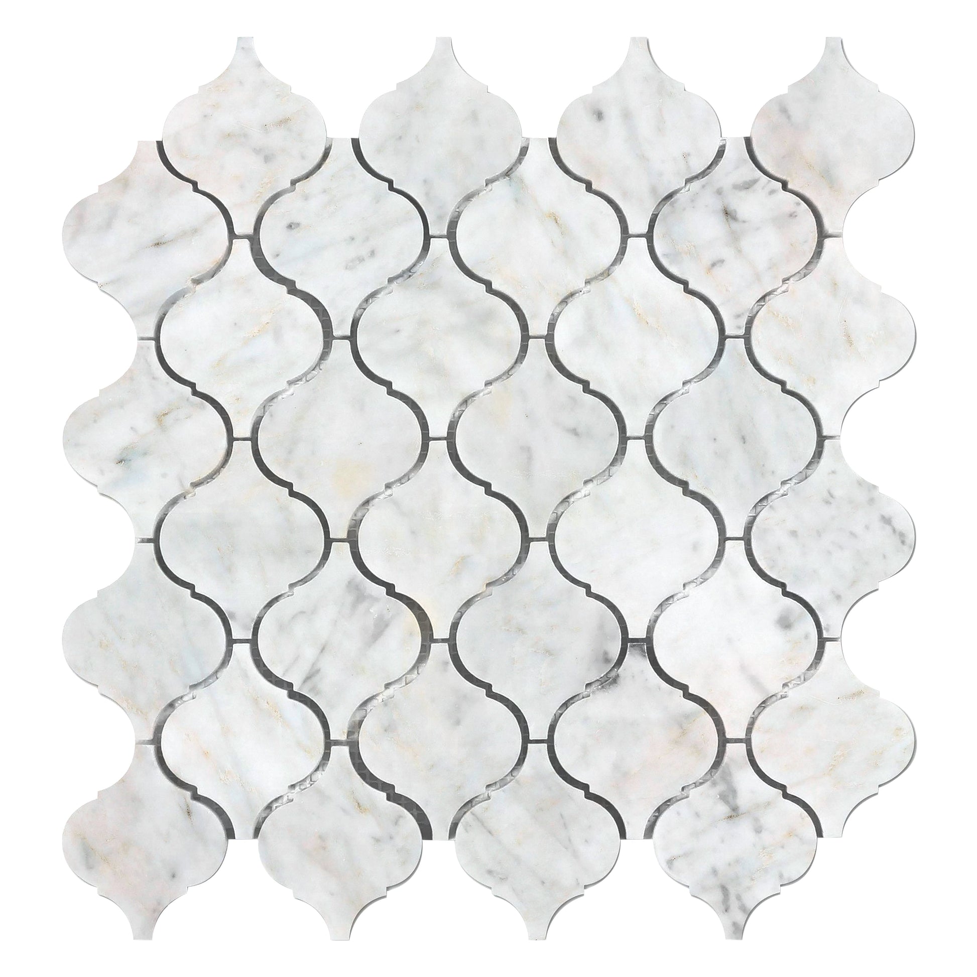 From Asia's mightiest mountains to your space Oriental White (Bianco Bello) Marble kitchen backsplash tile and mosaic floor tile will adorn your interior design. Oriental White Arabesque Mosaic Tile & Floor Mosaic is a mosaic tile that has little smooth cream and dark thin veins.