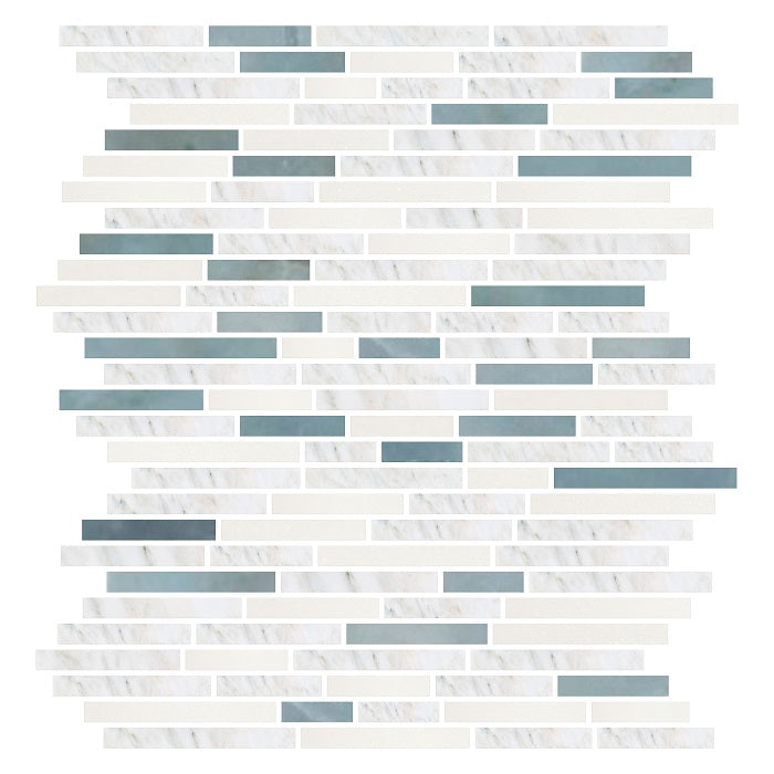From Asia's mightiest mountains to your space Oriental White (Bianco Bello) Marble kitchen backsplash tile and mosaic floor tile will adorn your interior design. Oriental White Bamboo Sticks w/Blue - Gray Mosaic Tile & Floor Mosaic is a mosaic tile that has little smooth cream and dark thin veins.