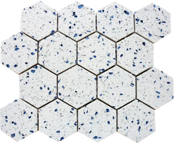 Terrazzo Blue Terrazzo Mosaic Polished 3" x 3" Hexagon