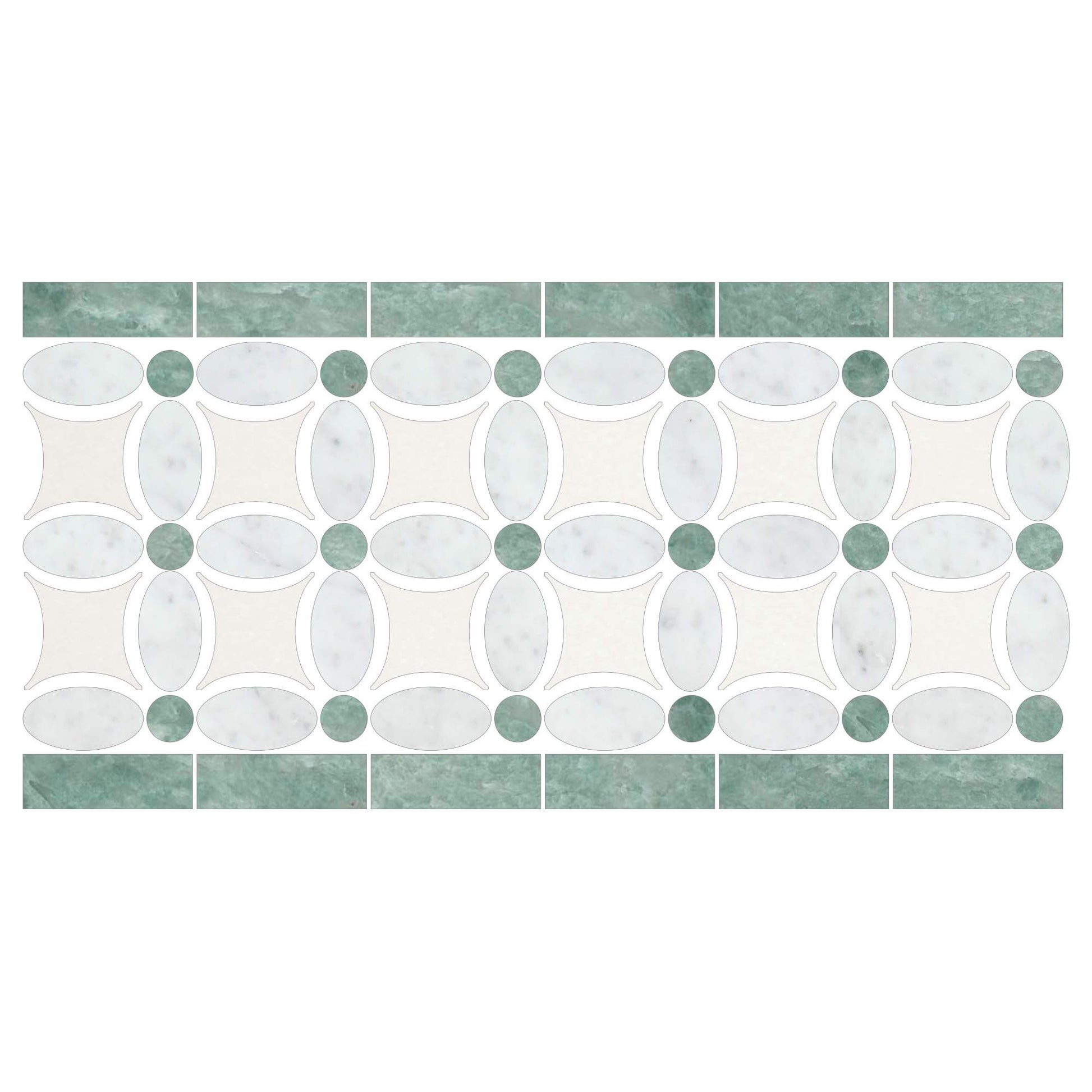 | Product Name | Thassos White (Greek) Marble Florida Flower Border (Thassos + White Carrara (Oval) + Ming-Green (Dots)) 5 3/4 x11 1/4 3/8 |